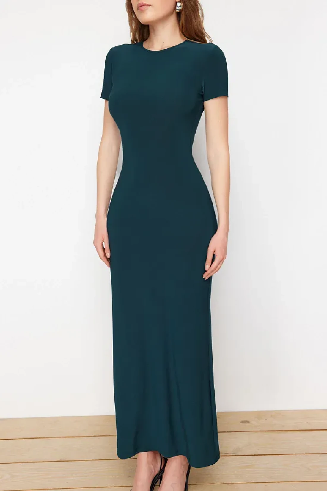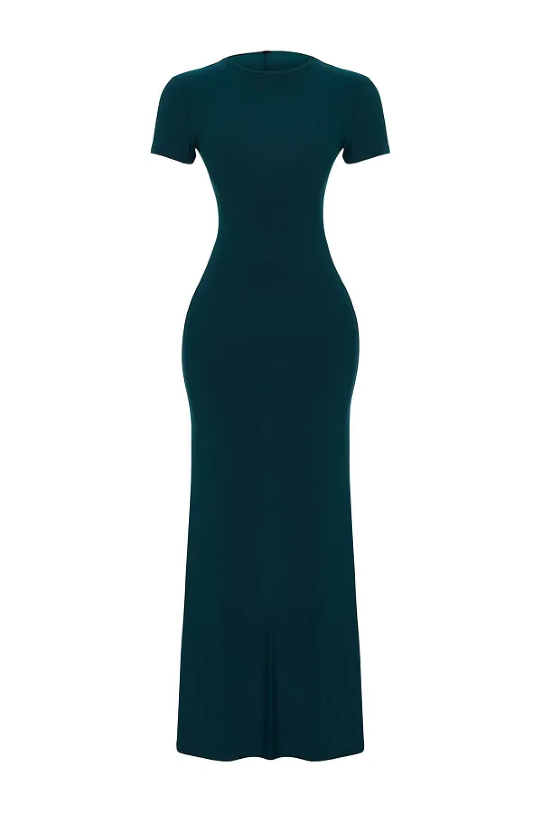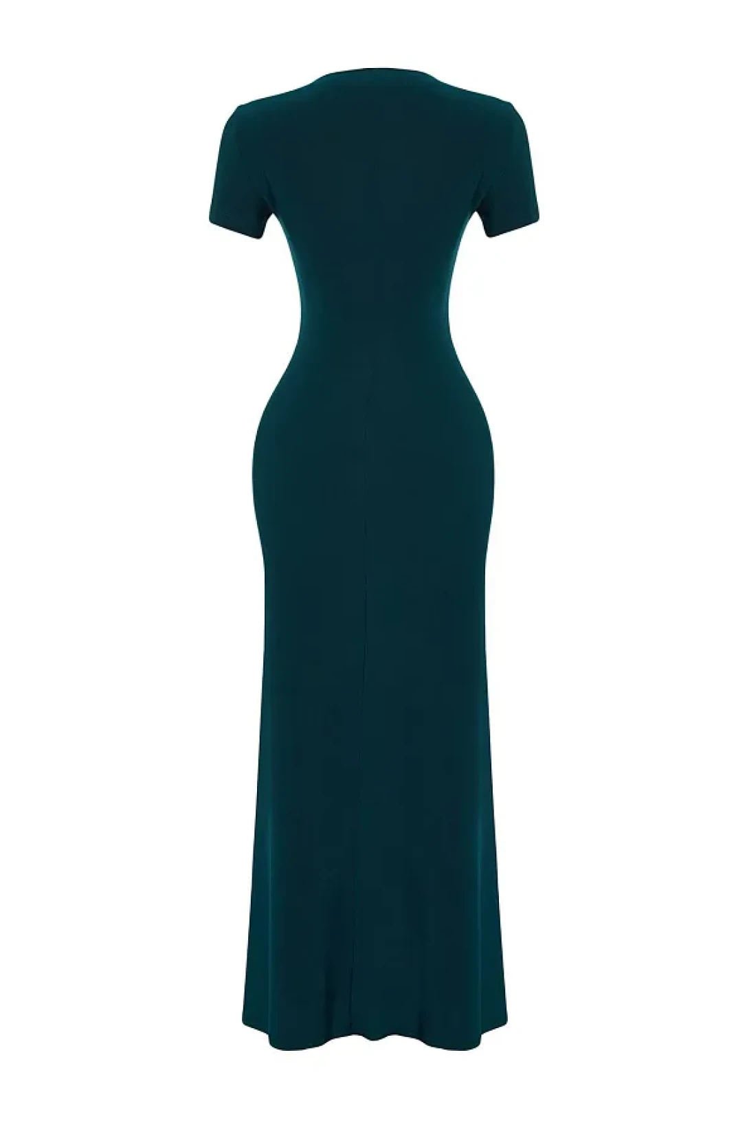 Collection Emerald Green Short Sleeve Fitted Crew Neck Flexible Knitted Maxi Pencil Dress TWOSS24EL00097