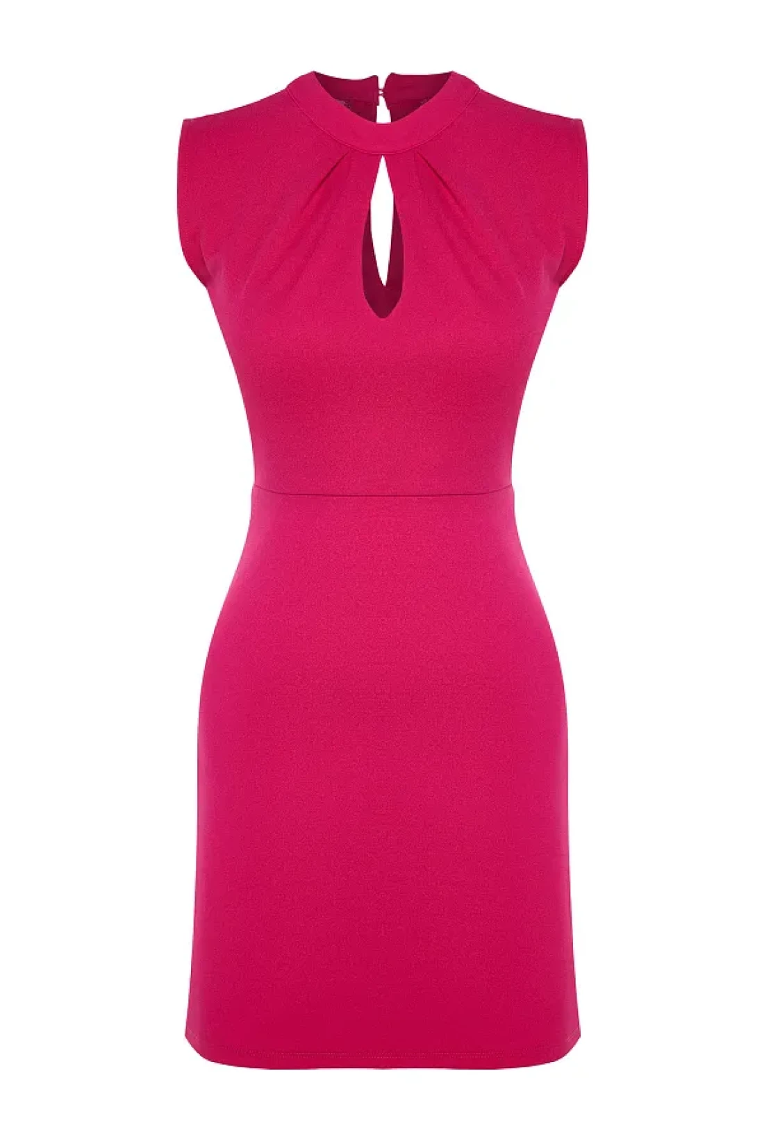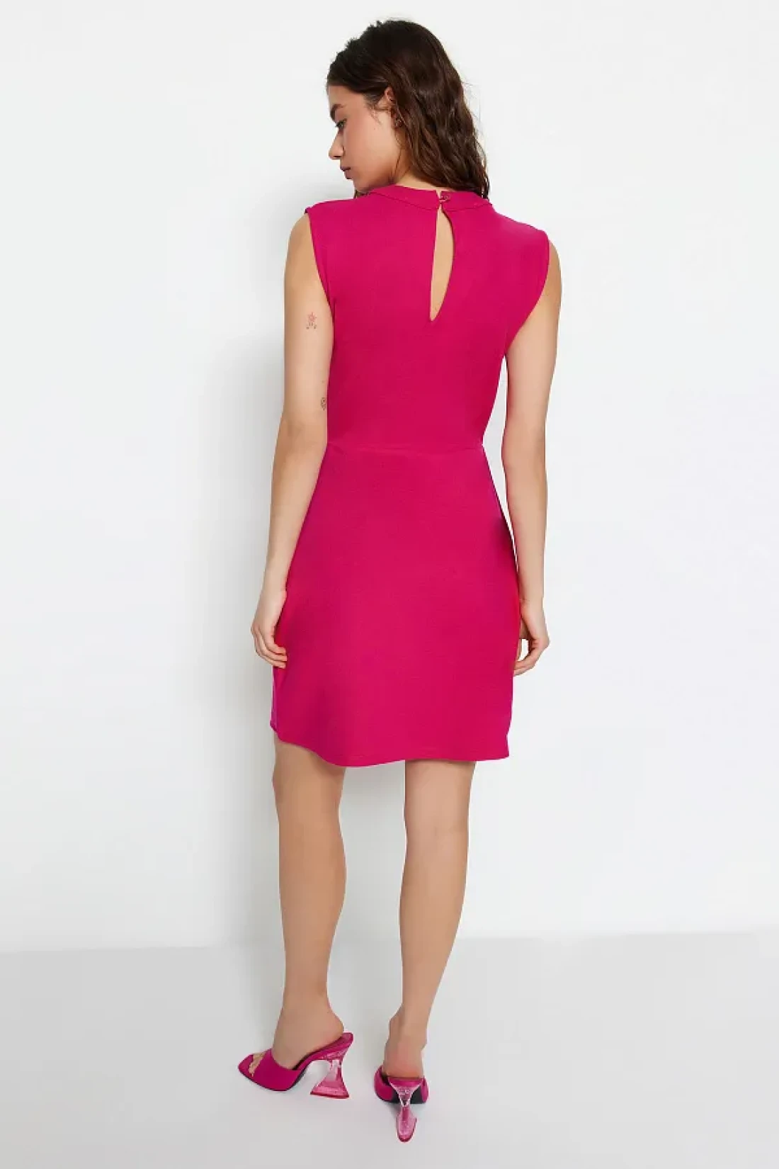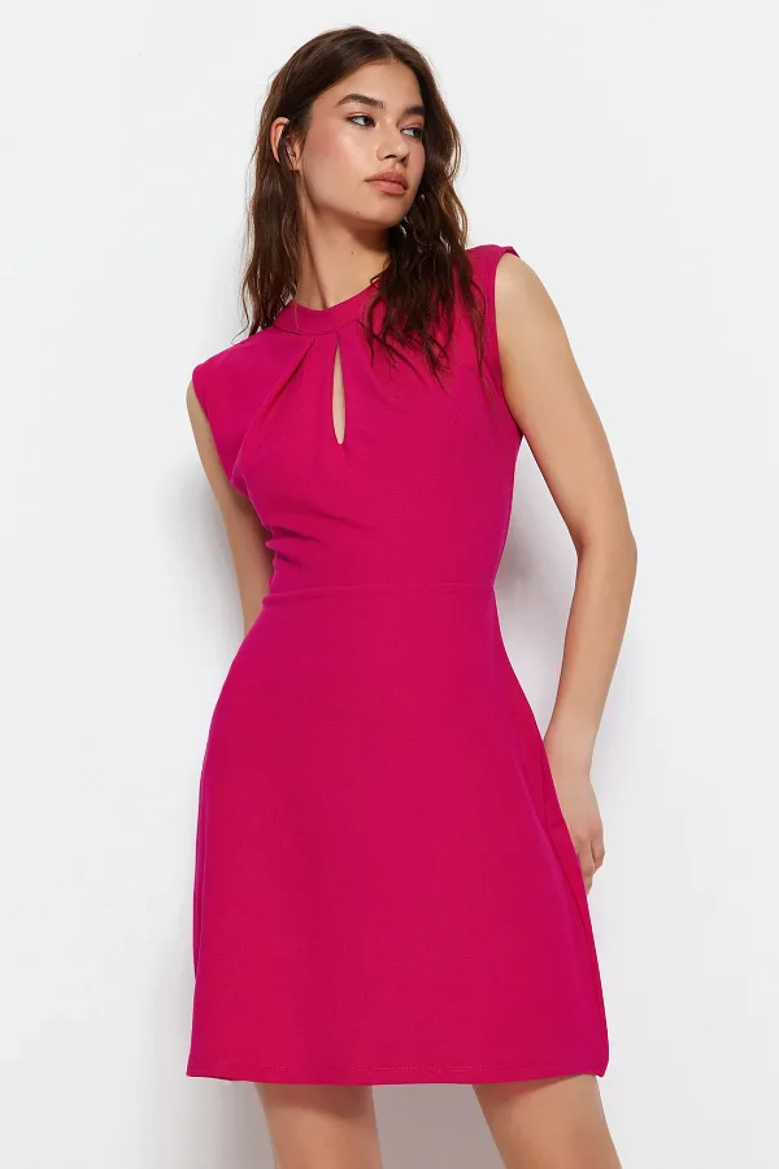 Collection Fuchsia Neckline Crepe Mini Skater Dress - Low Back Knitted, Twoss23El02015