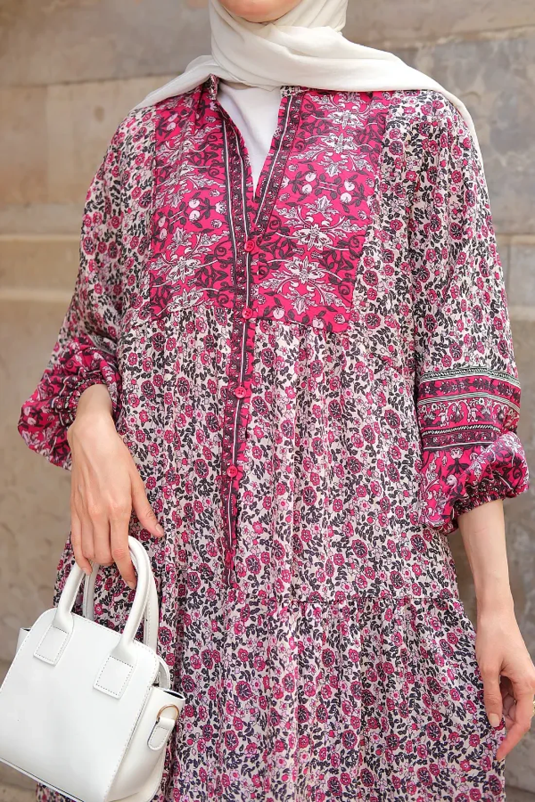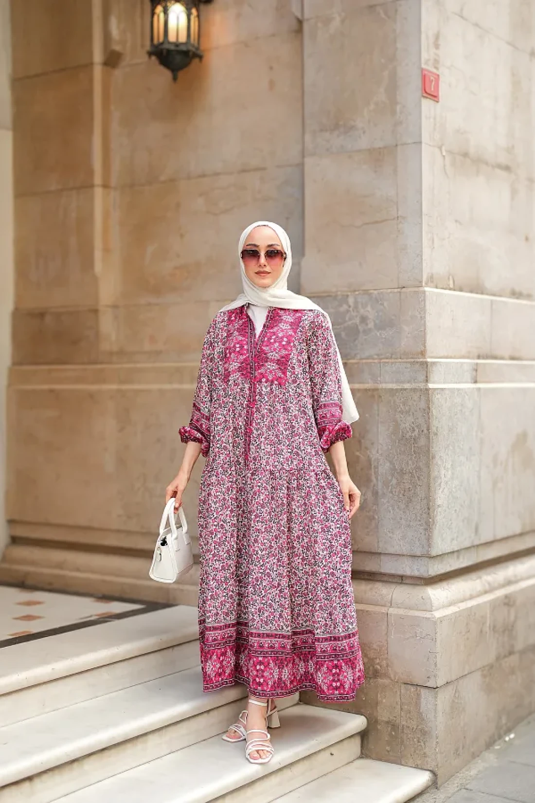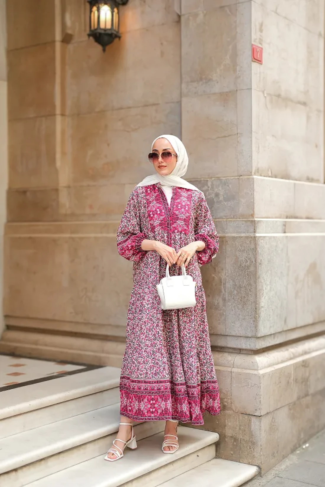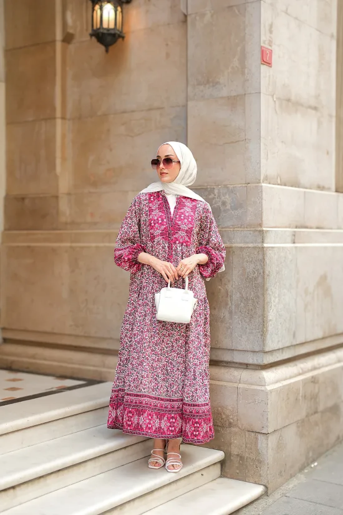 LOCCO Women's Palace Motif Dress Fuchsia
