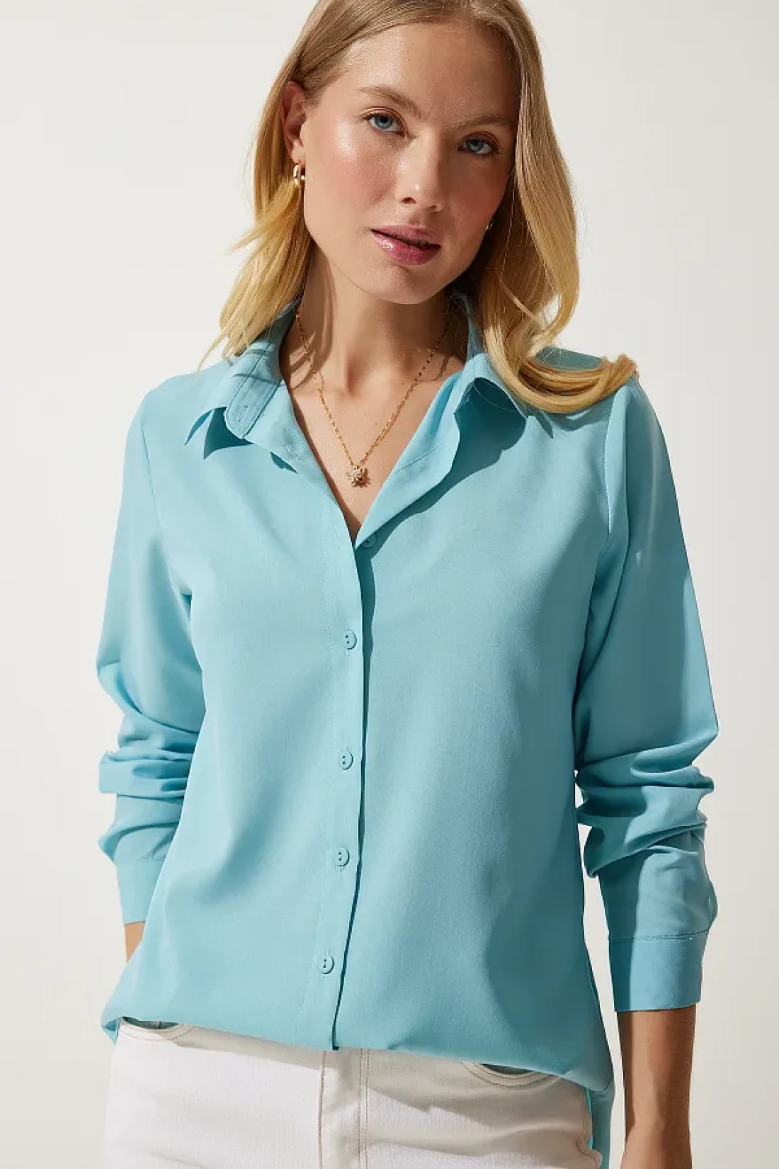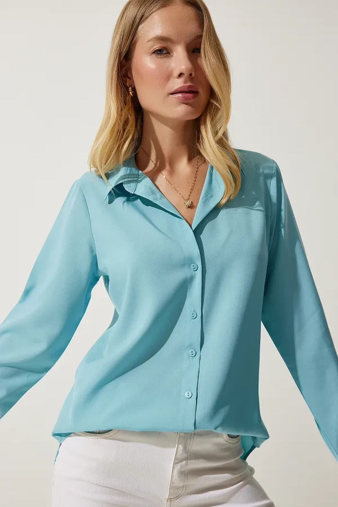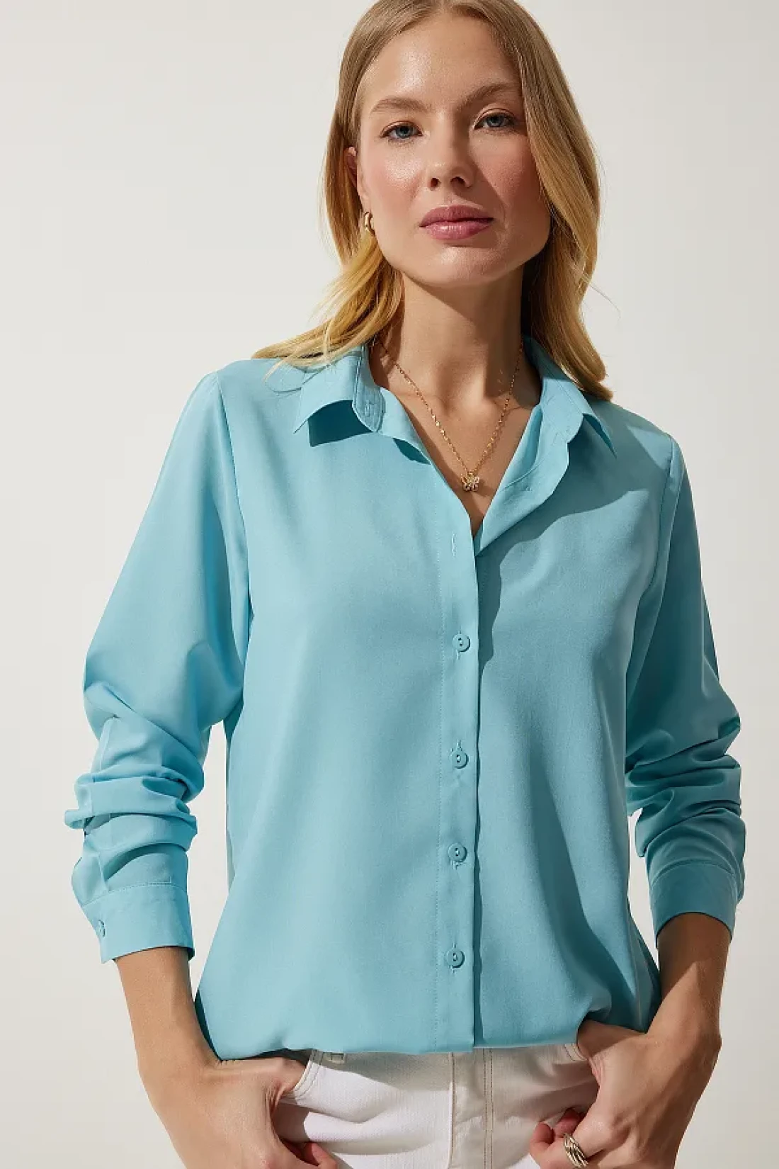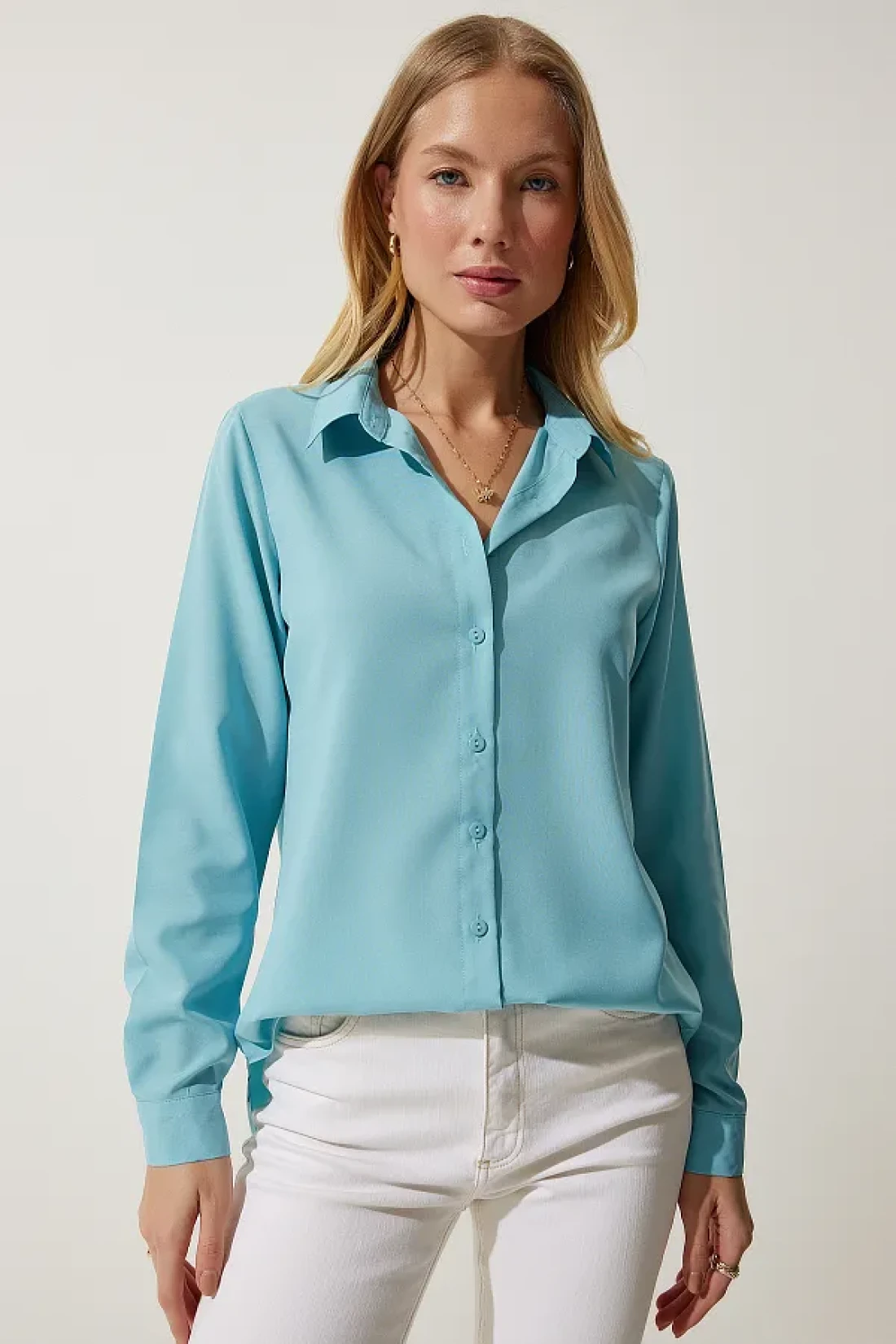 Happiness İstanbul Women's Turquoise Soft Textured Basic Shirt DD01297