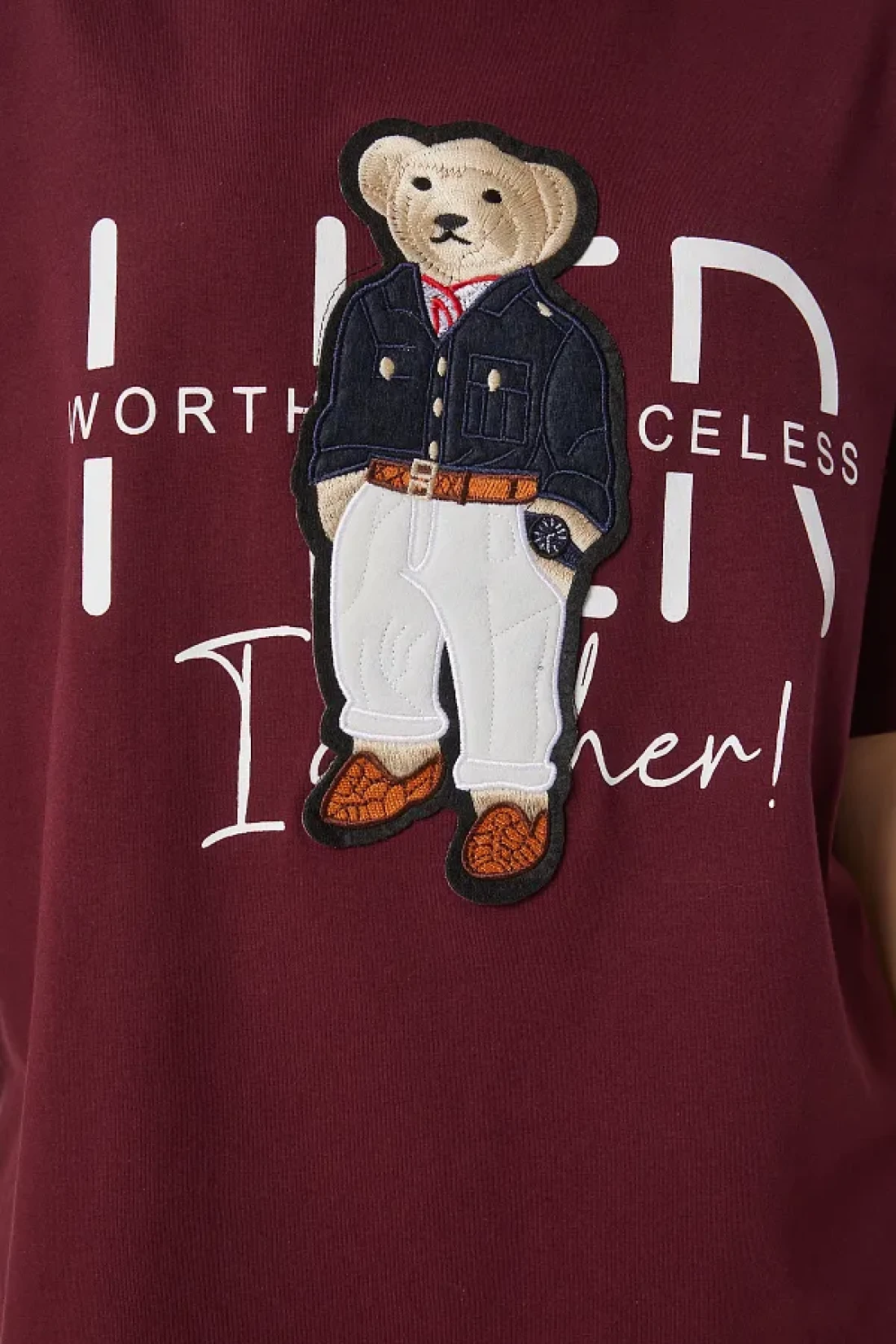 bicycle collar, embossed teddy bear emblem, Printed cotton, Oversized knitted t-shirt