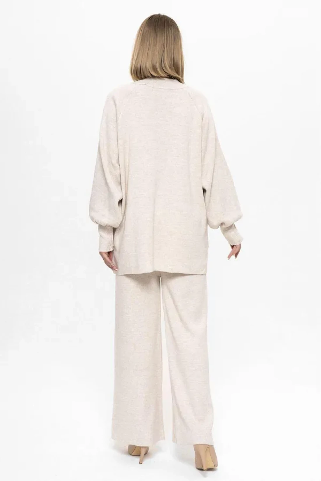 thus, it provides an eco-friendly shopping experience. It guarantees an ideal fit by adapting to different body types with its standard size. Thanks to its knit fabric, it keeps you warm while being breathable, offering comfort all day long. The wide-leg cut reflects modern trends, while the long sleeve length provides ideal protection during seasonal transitions.