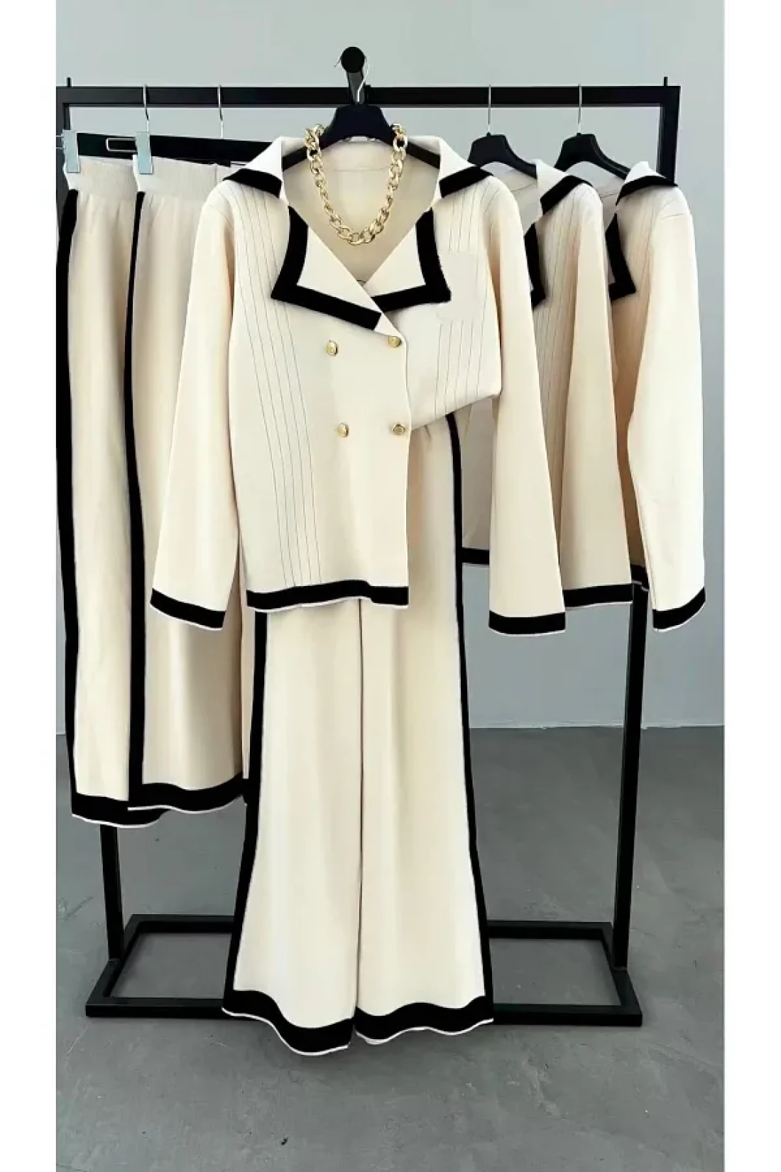 Tebessüm Life Premium Fabric Gold Buttoned Knitwear Set