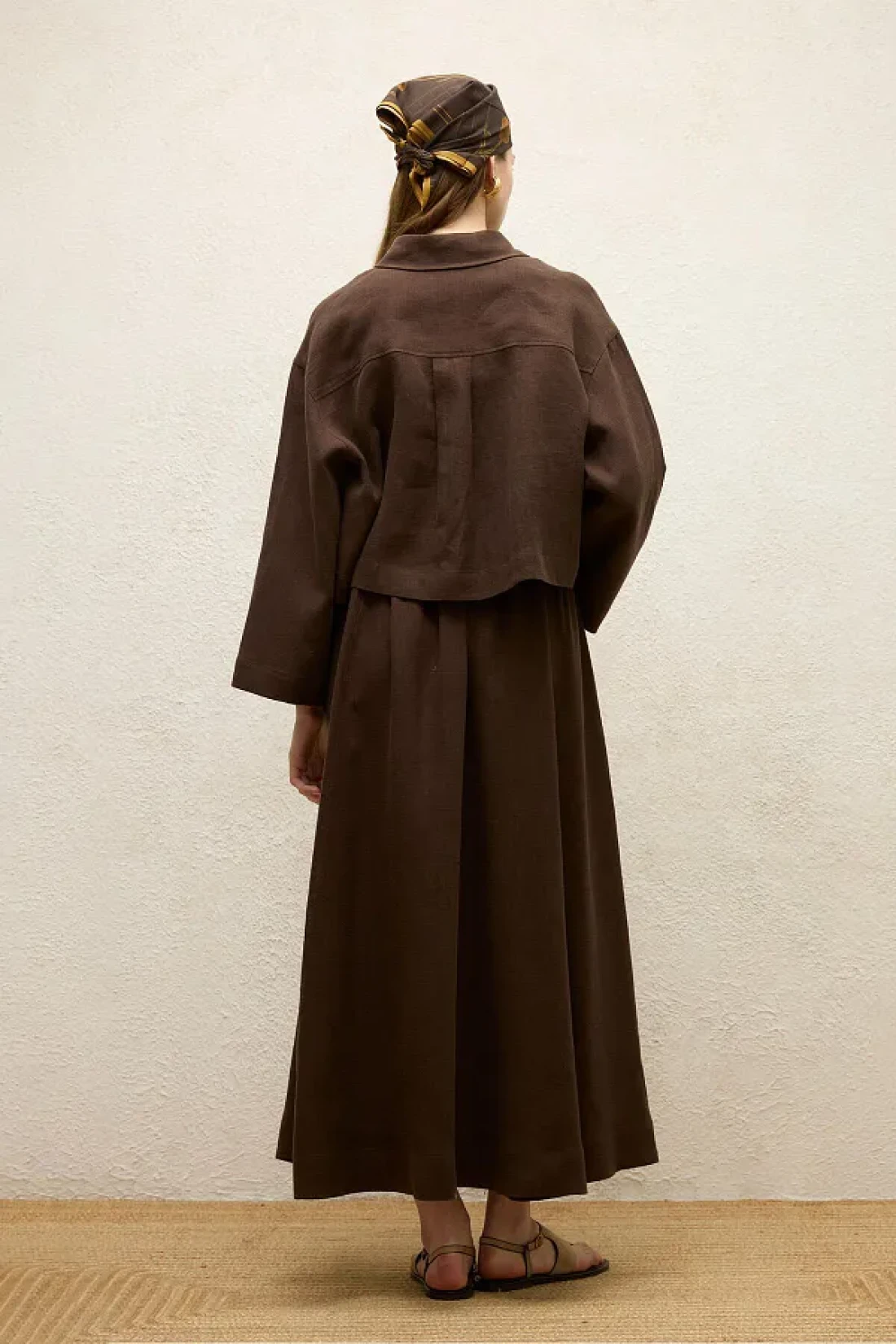 Manuka Bitter Brown Linen Skirt - Loose Cut