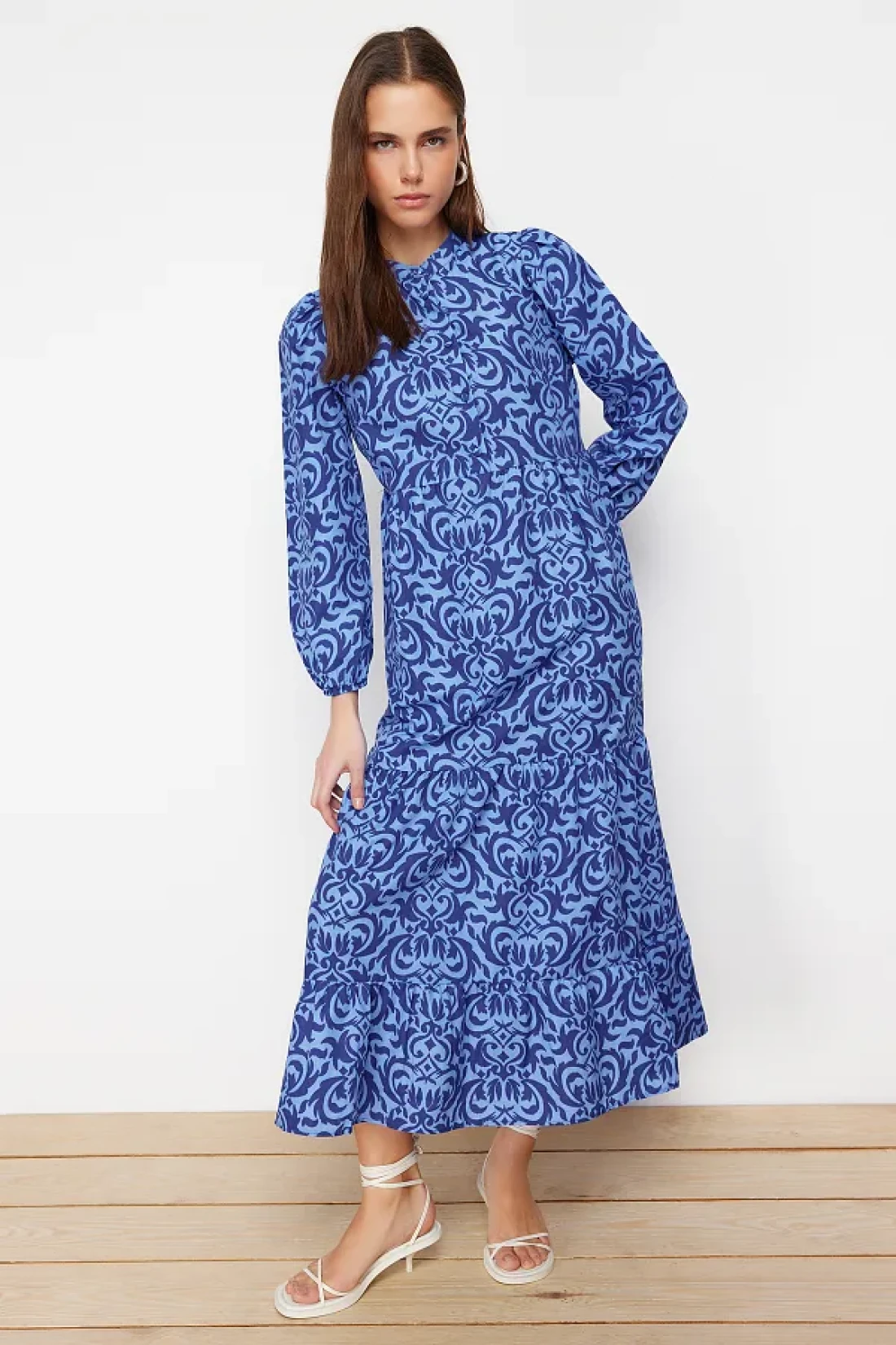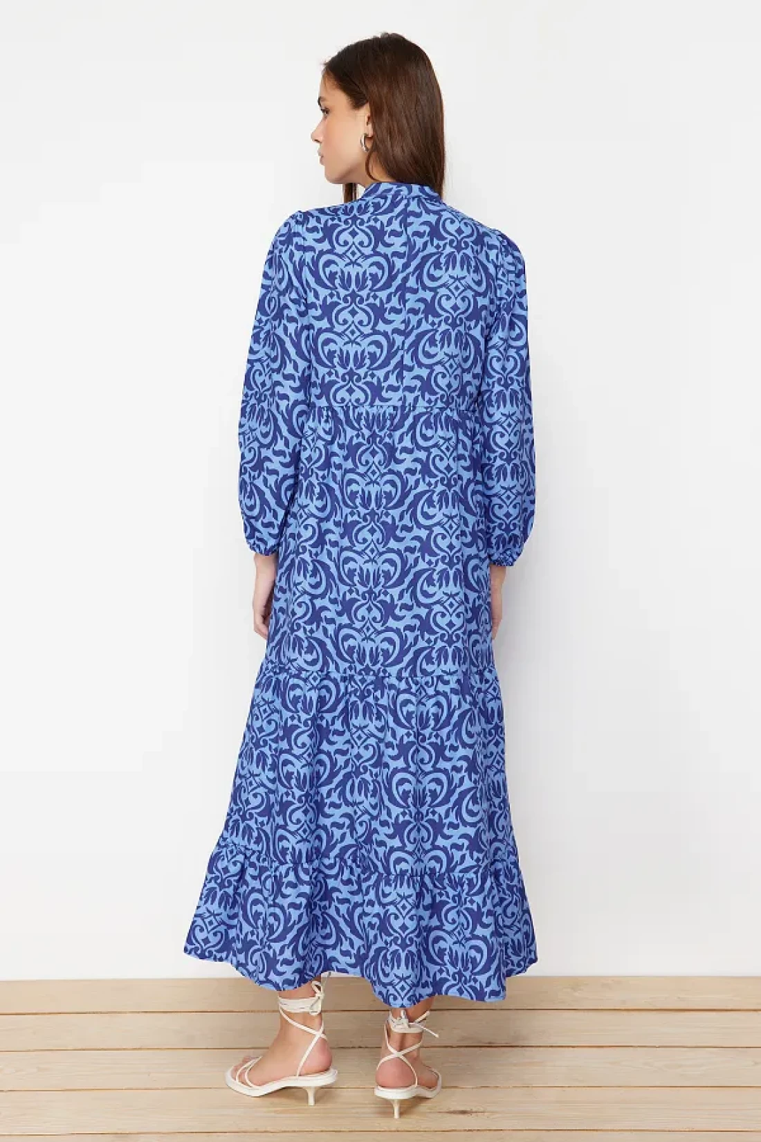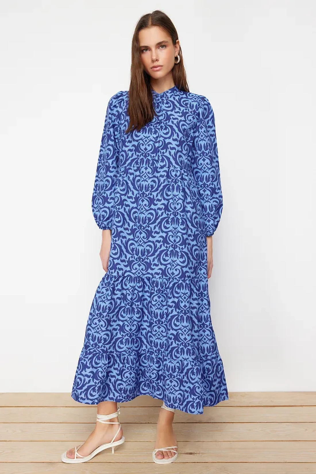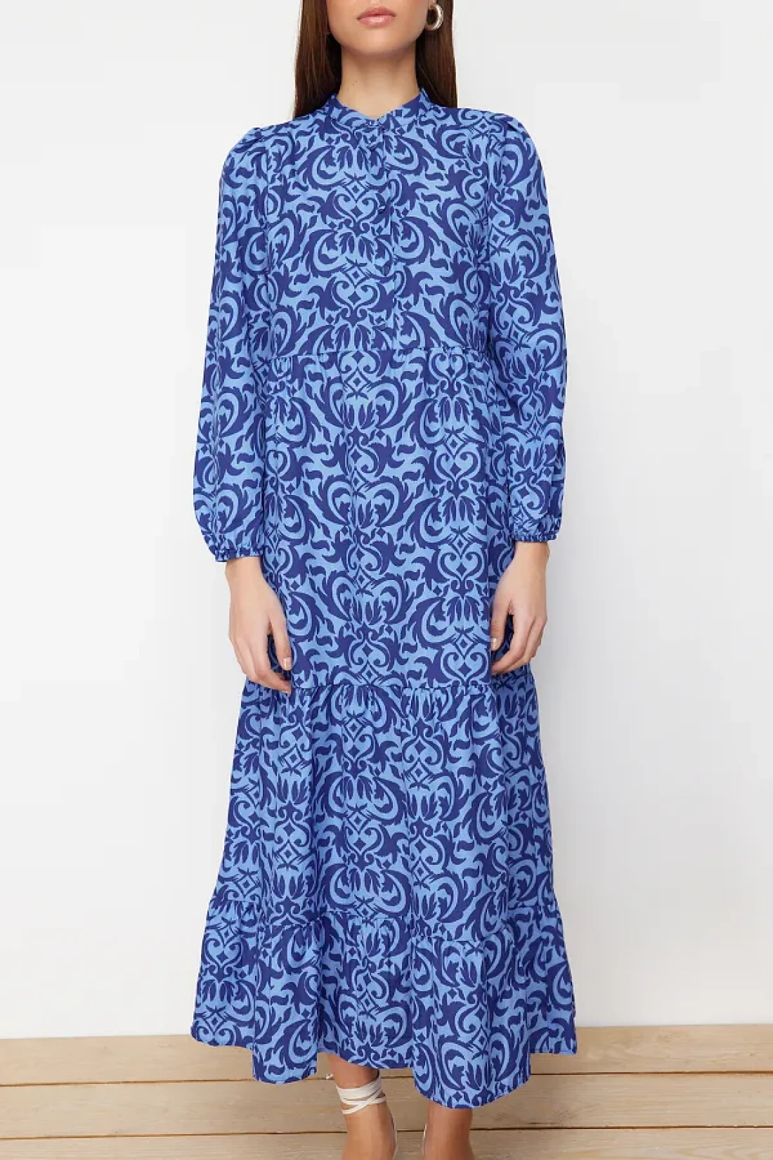 Modest Saks Patterned Half Placket Wide Fit Cotton Woven Dress TCTSS23EB00222