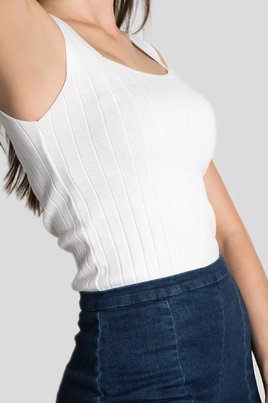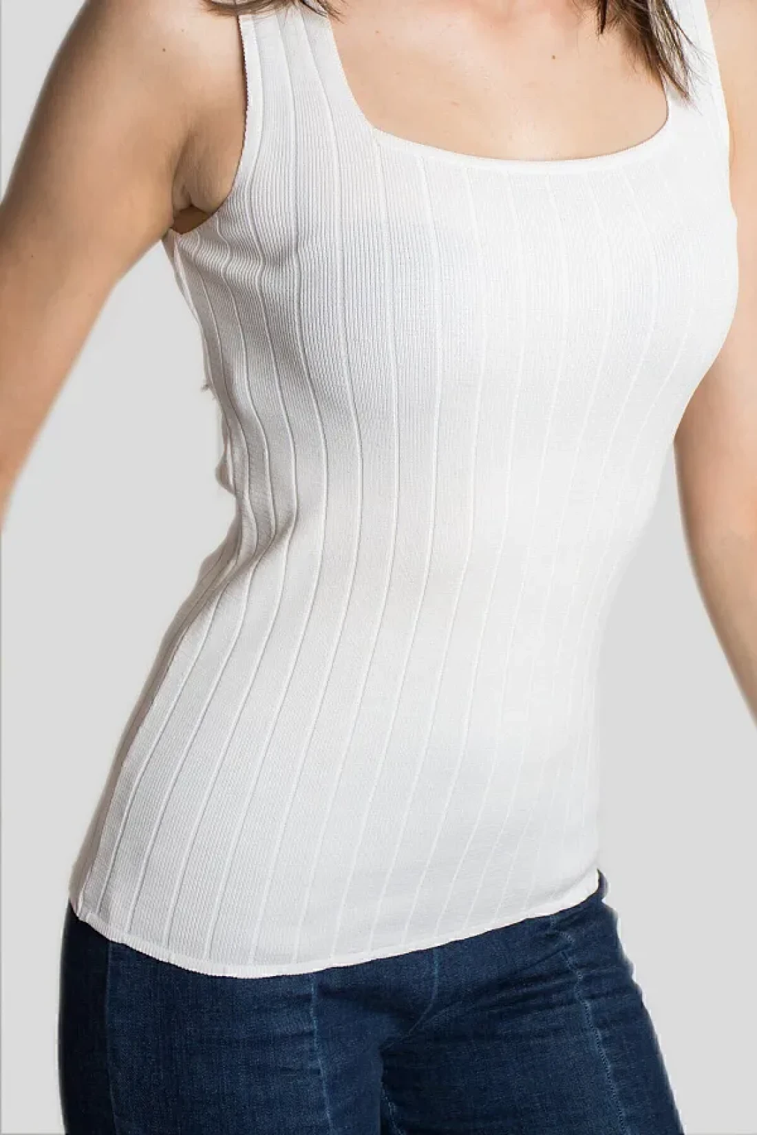 Butik Women's Ribbed Knitwear Blouse - Sleeveless, Thick Strap, Square Collar, Thin Summer