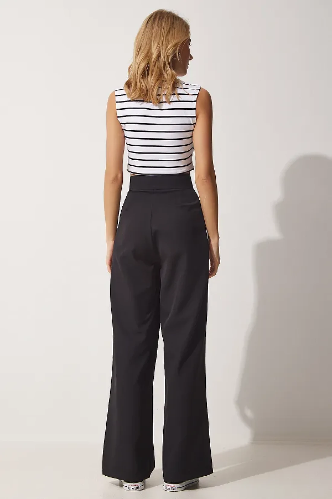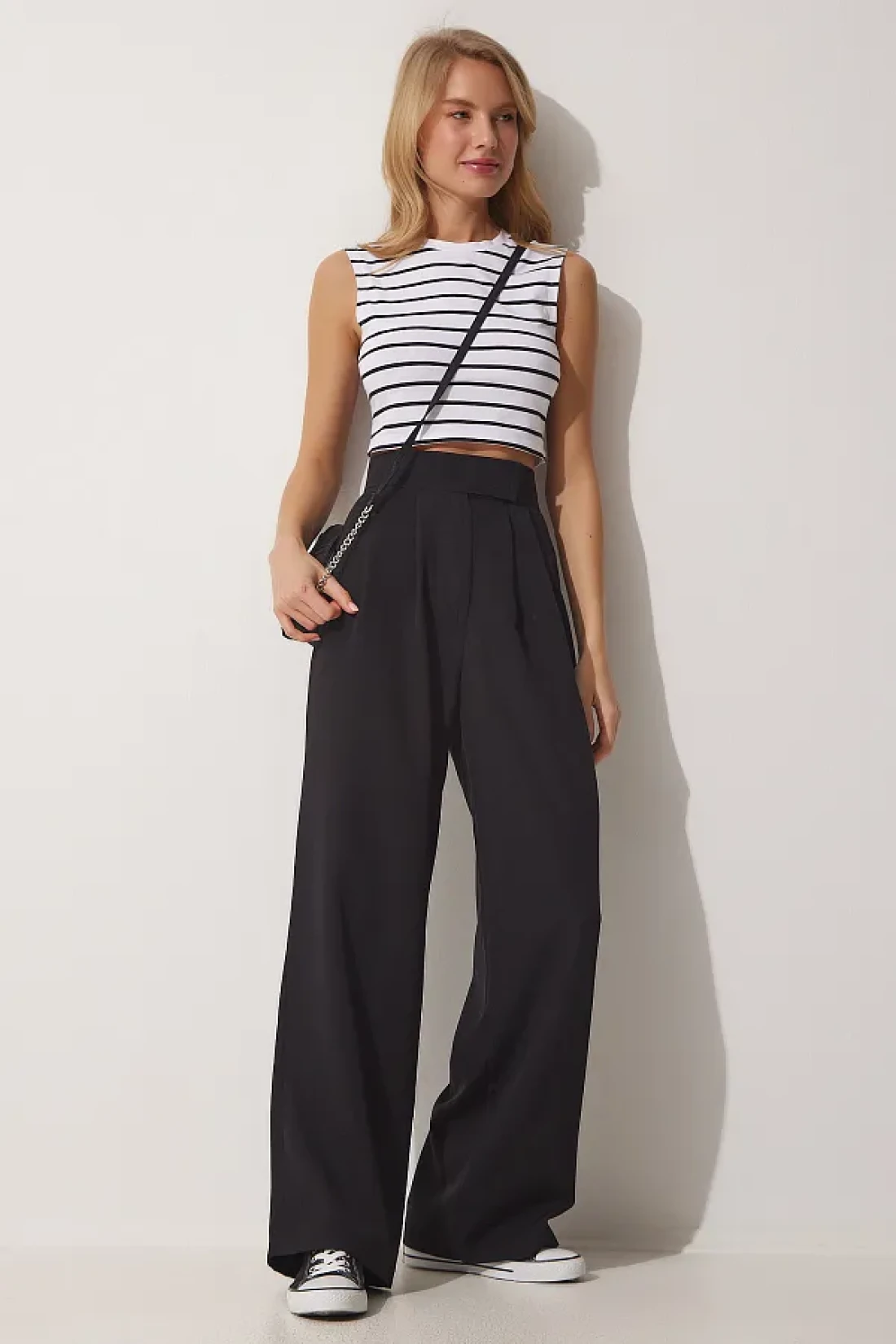 The wide leg design gives a modern and trendy look without compromising comfort. It has a structure that does not wrap the body with its relaxed silhouette, allowing for free movement. The belt detail emphasizes the waist area, adding a feminine touch, while offering the possibility of adjustment. This pair of trousers, which you can easily prefer even in stylish environments, is a daily combination.