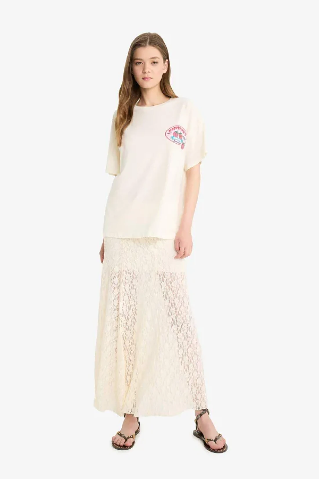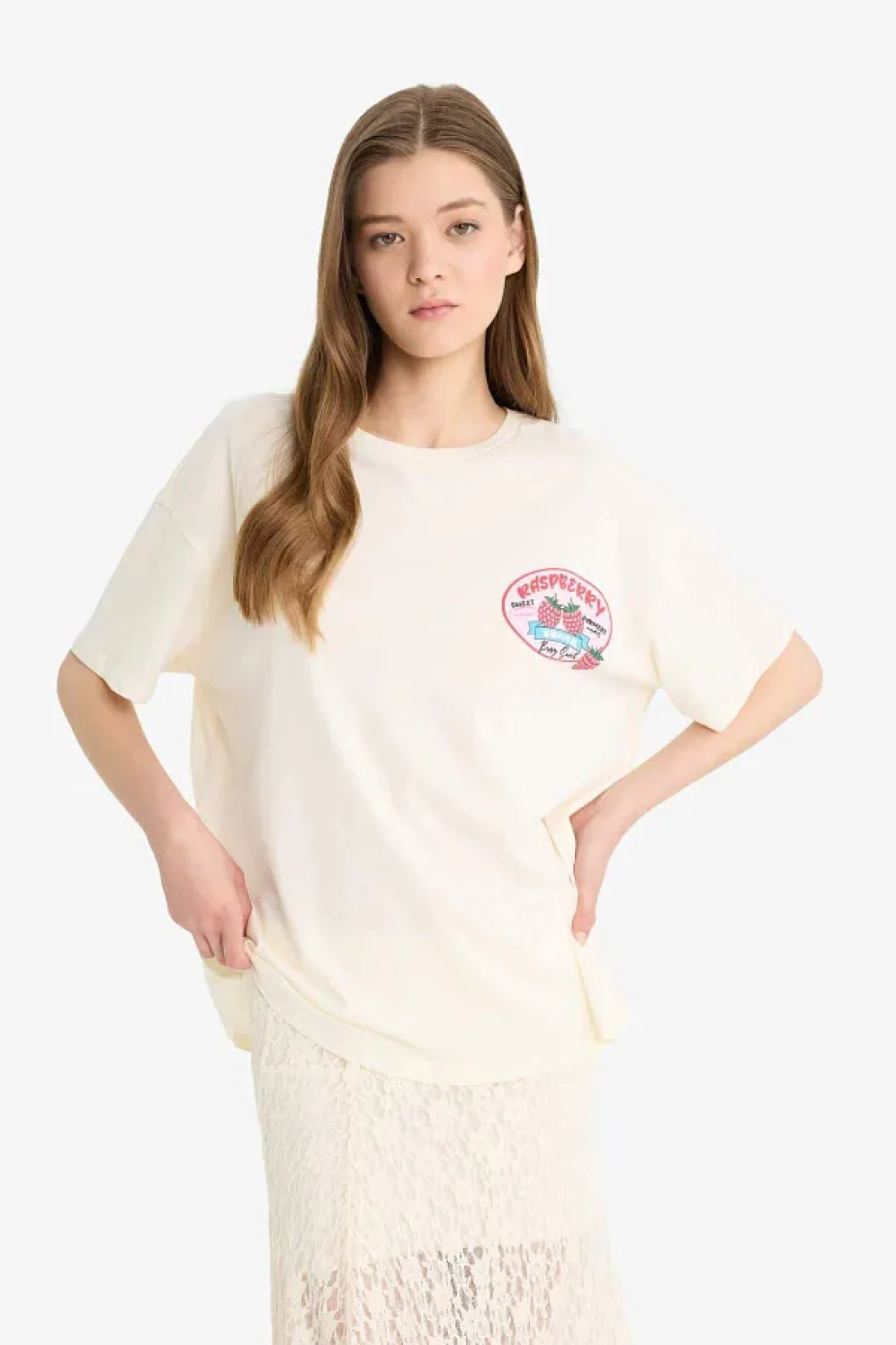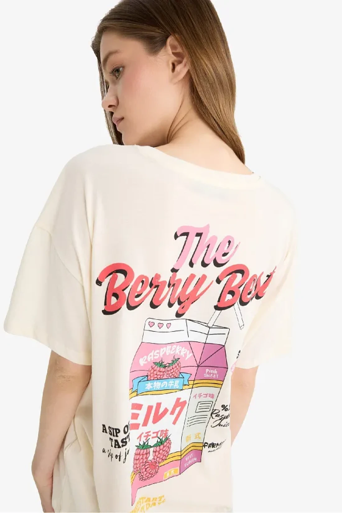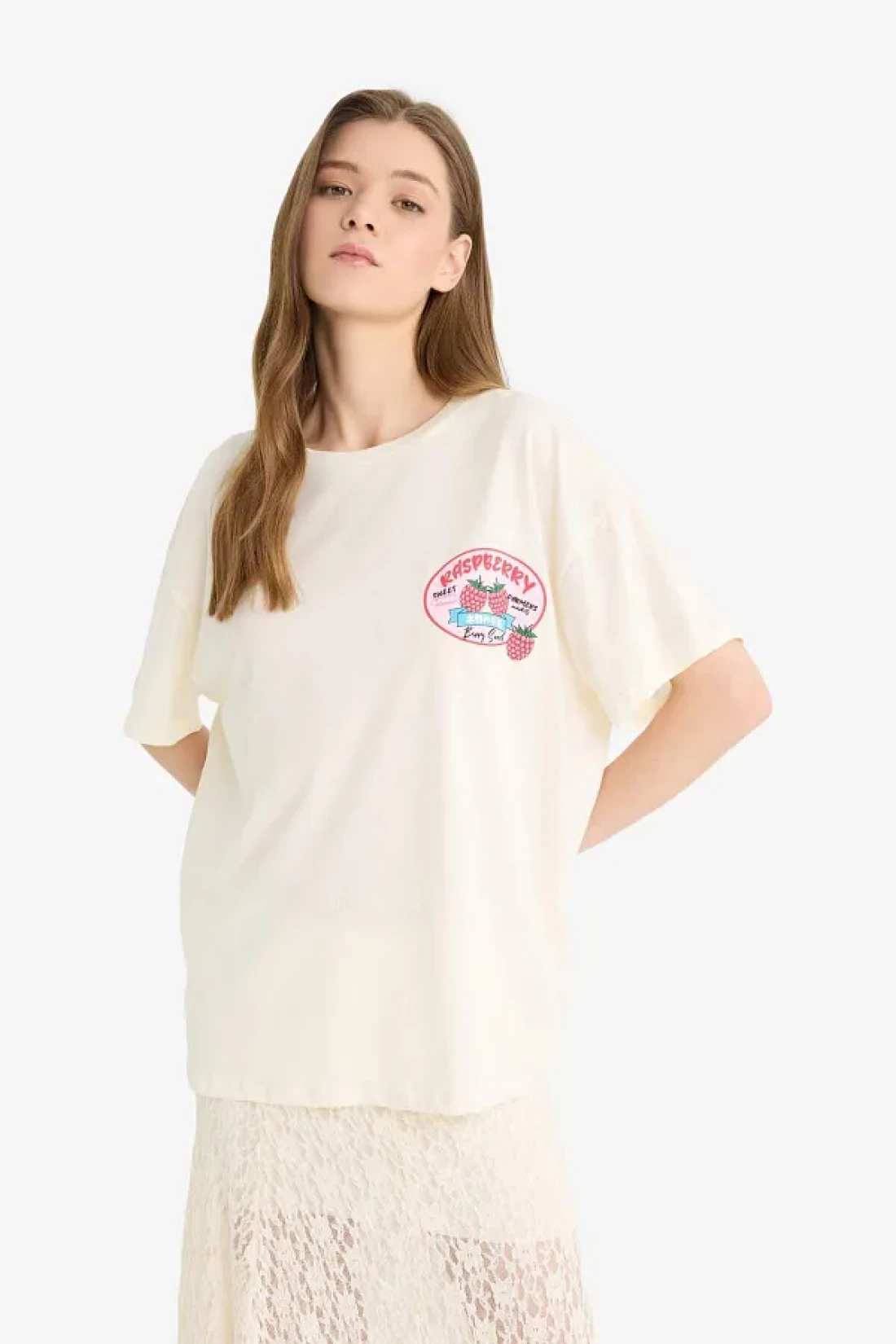 Defacto Coool Oversize Wide Fit Crew Neck Back Printed Short Sleeve T-Shirt F4787Ax25Sm