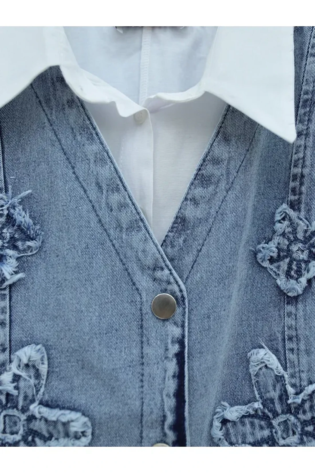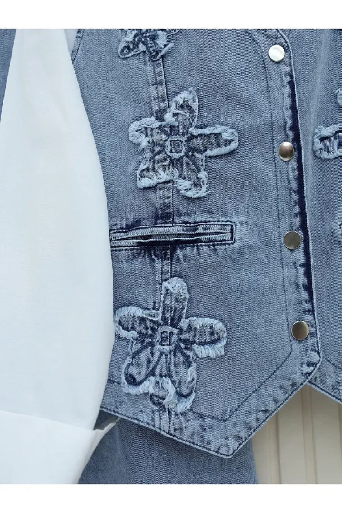 Modamorfo Patterned Skirt Elastic Waist Vest Skirt Denim Set - Ice Blue