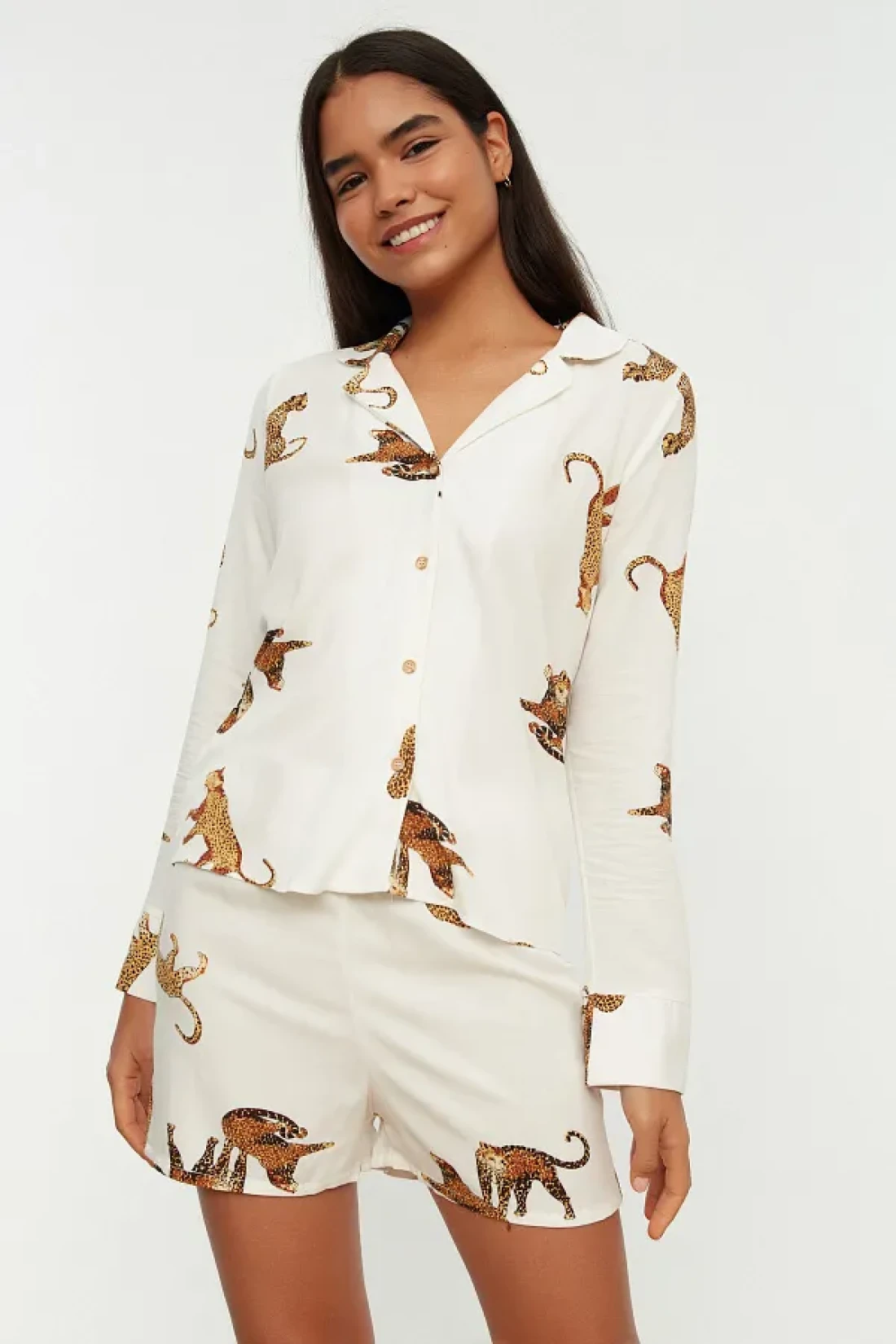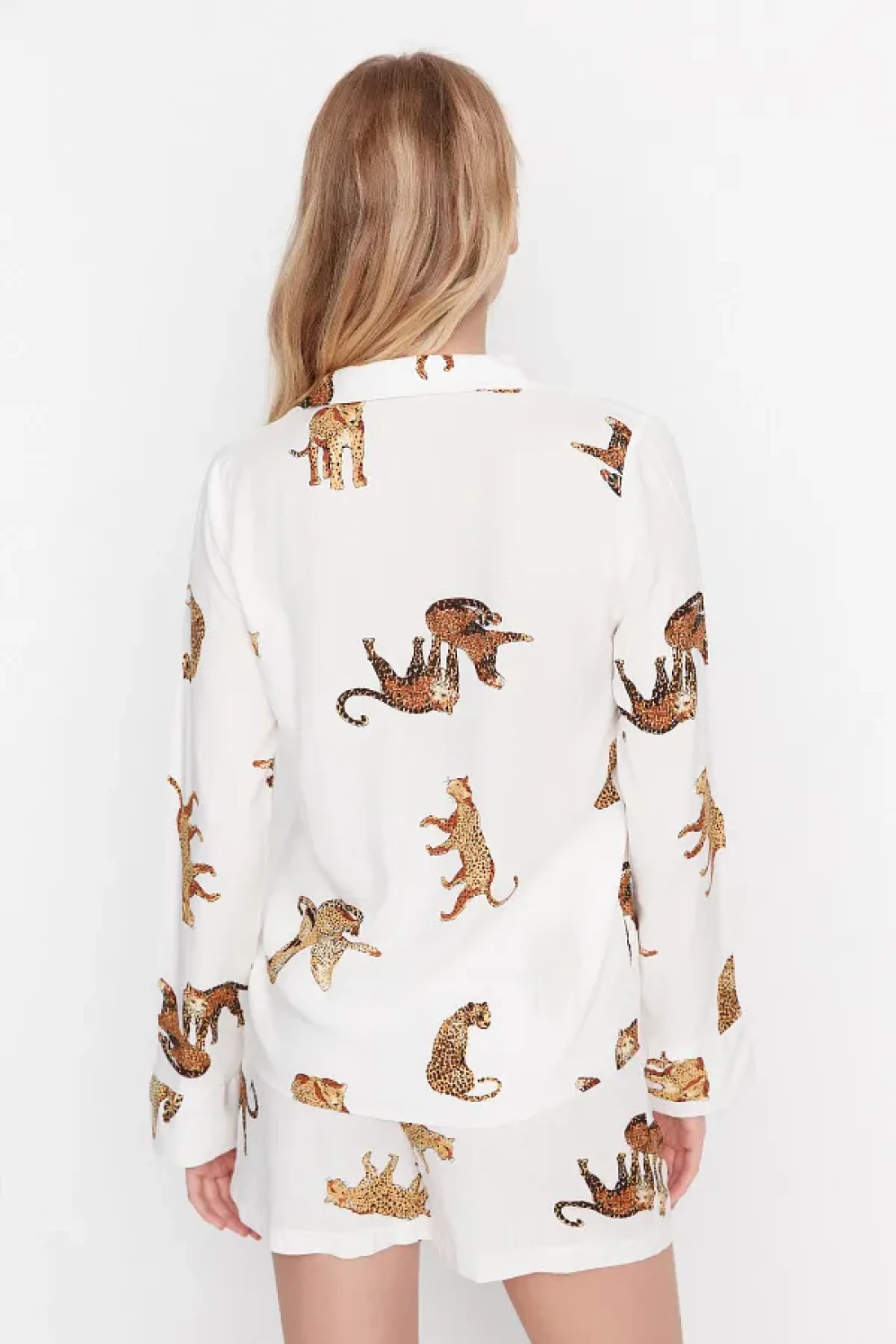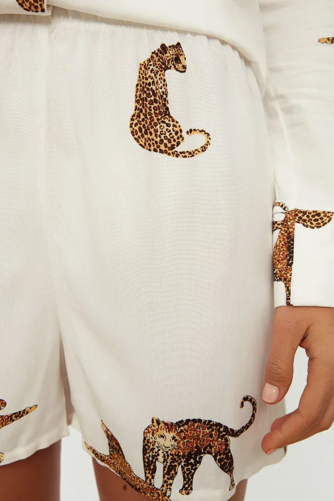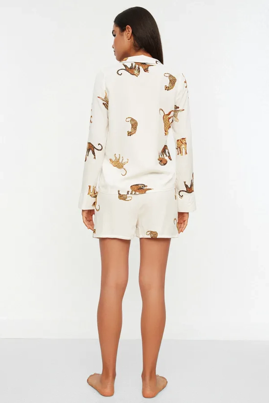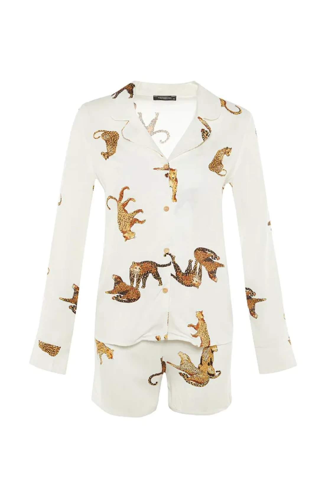 Collection Ecru Tiger Pattern Viscose Shirt-Shorts Woven Pajamas Set THMAW21PT0340