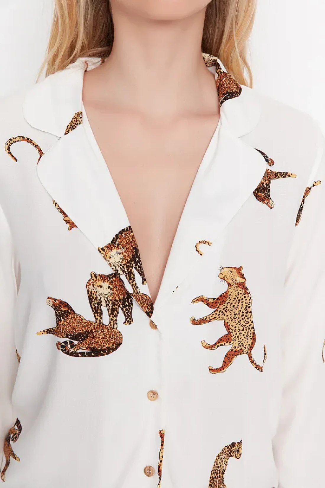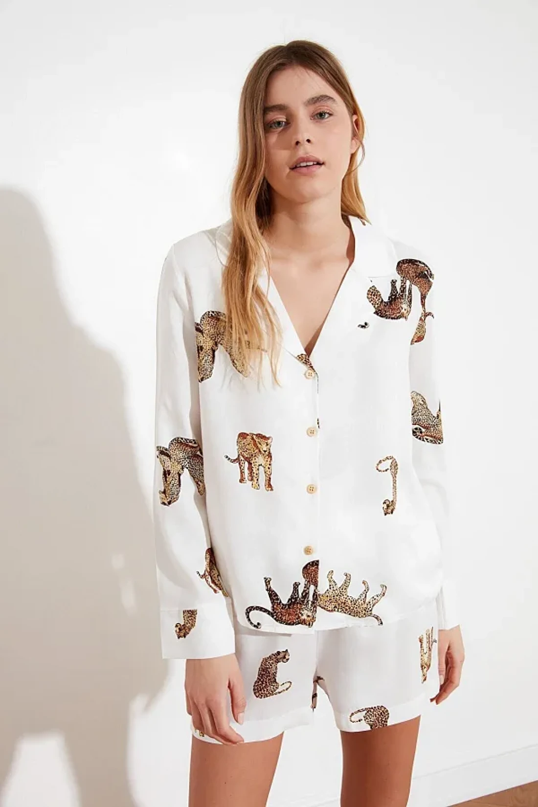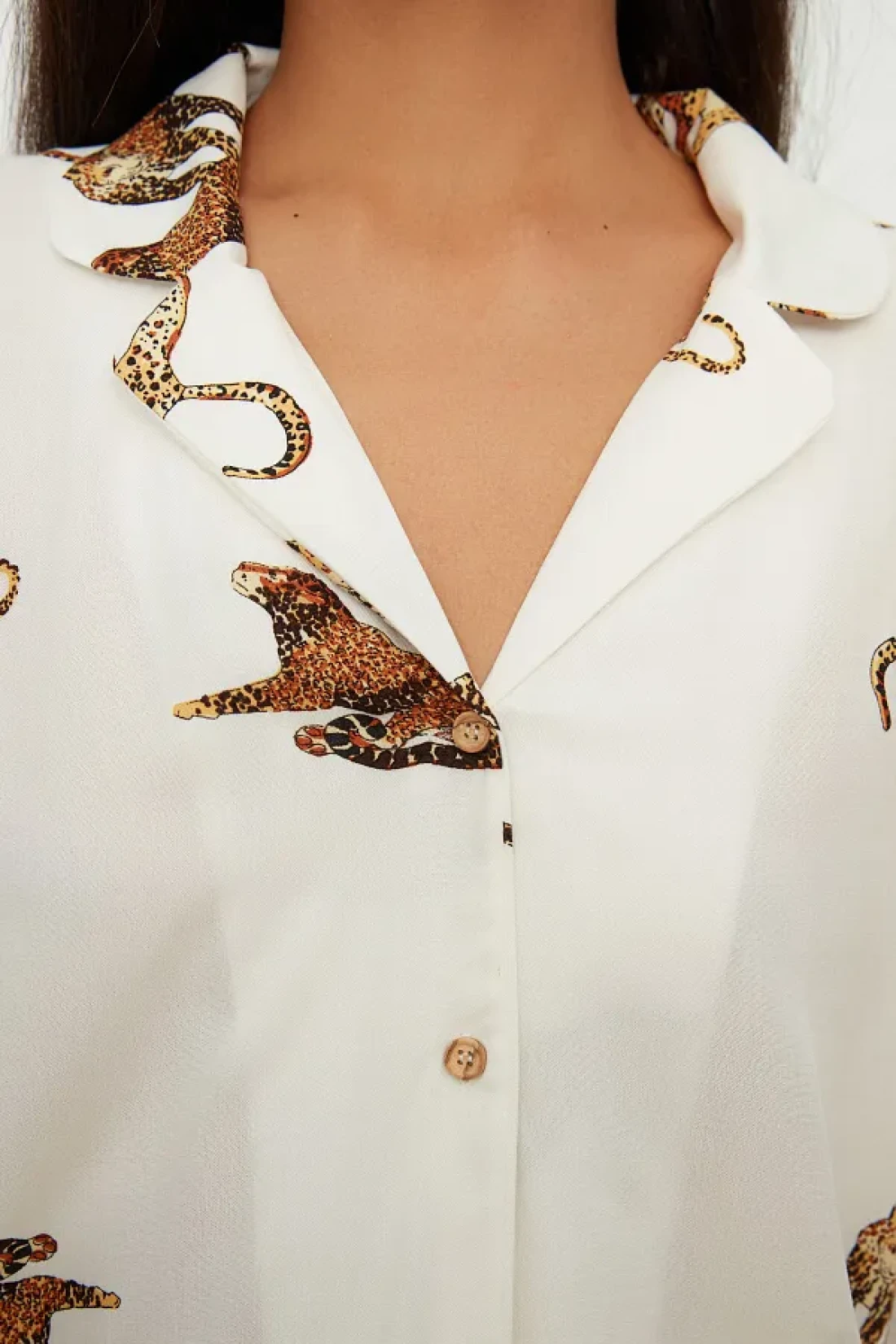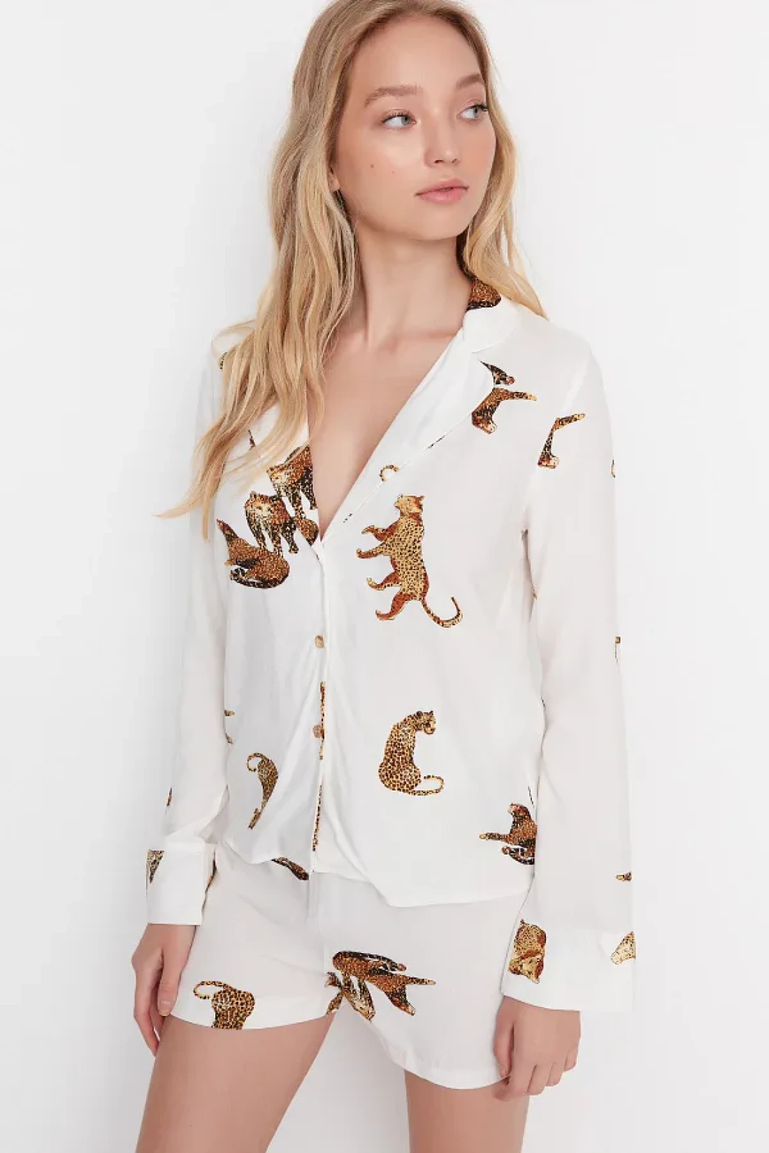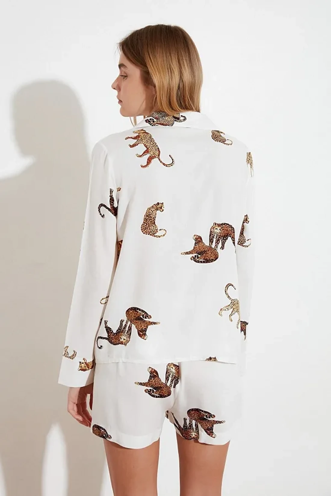 Collection Ecru Tiger Pattern Viscose Shirt-Shorts Woven Pajamas Set THMAW21PT0340