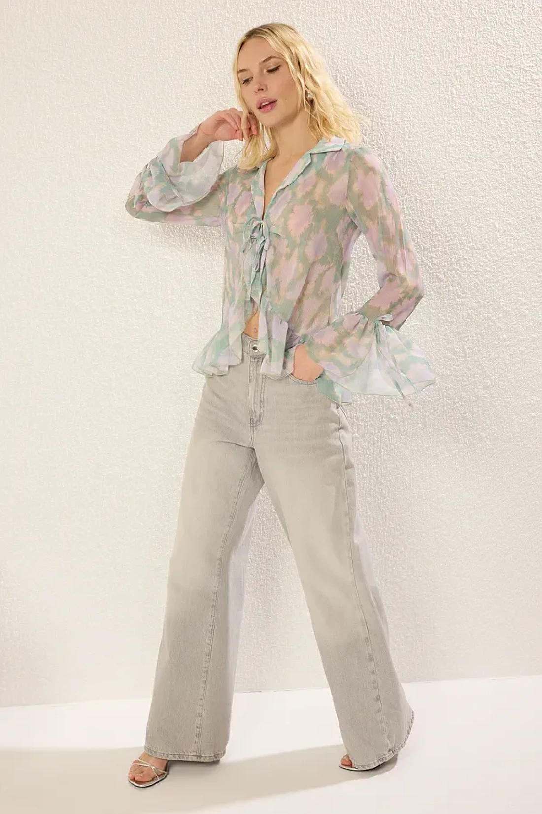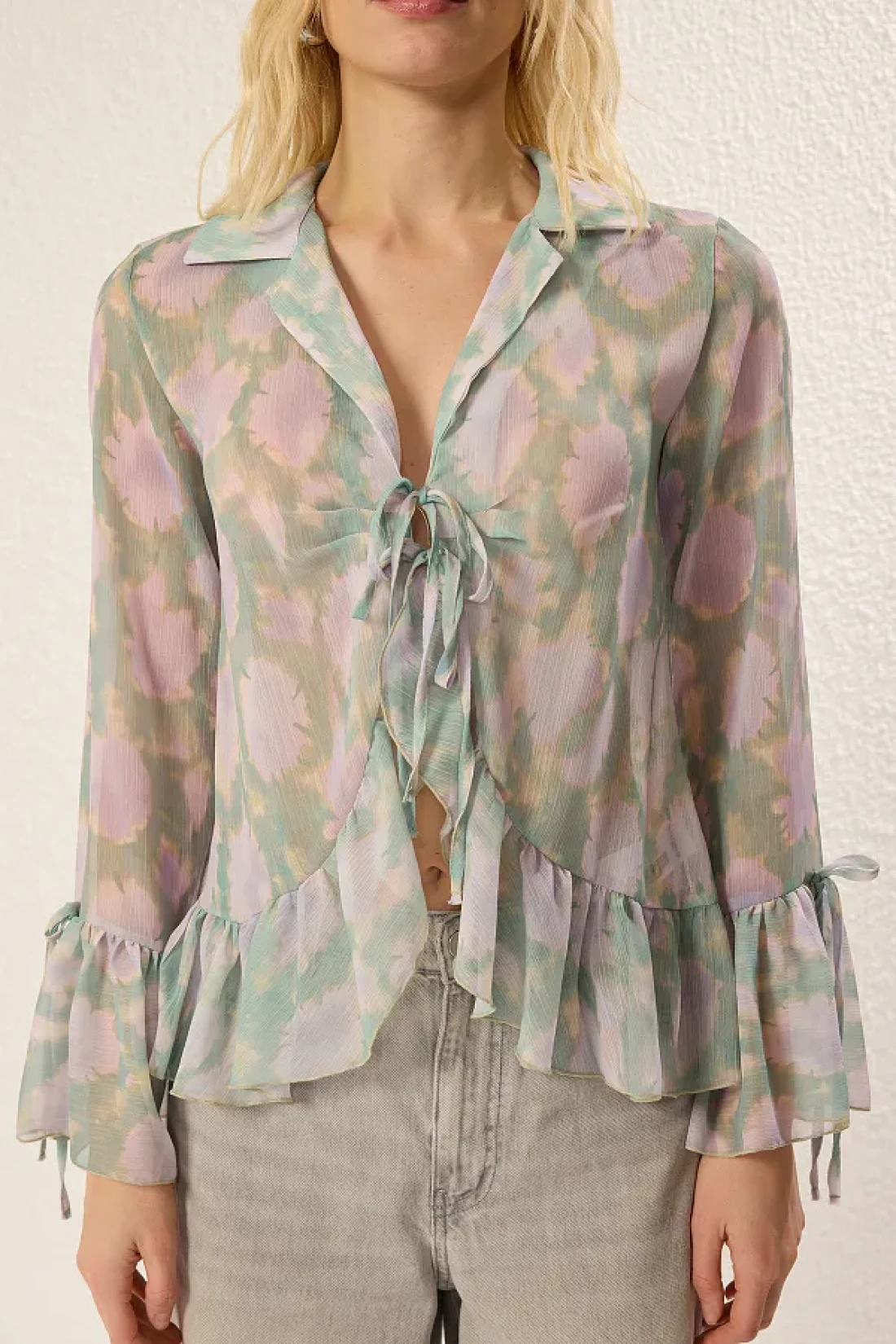 Collection Colorful Ruffle Detailed Tie up Shirt - Twoss25Go00090