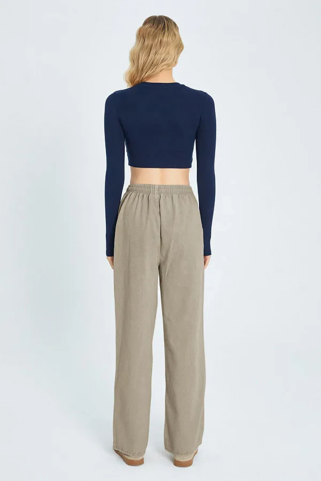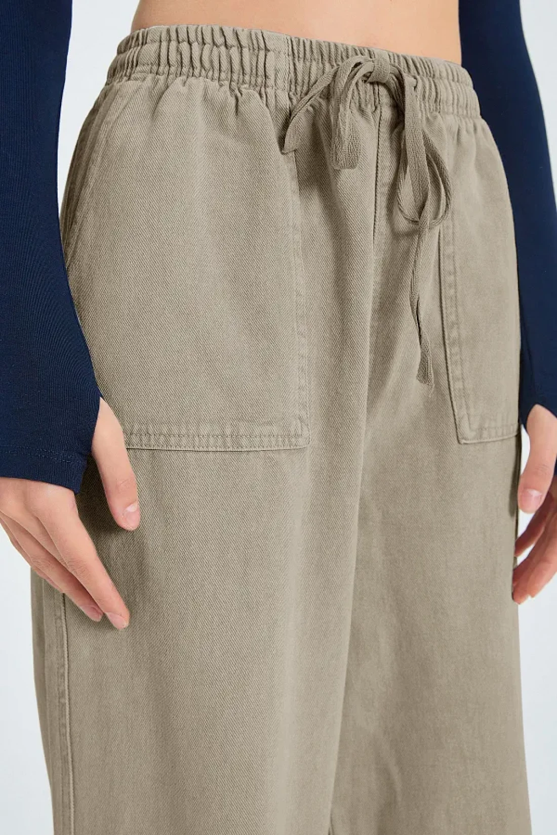 Collection Green Pocket Detailed Denim Look Wide Leg/Wide Leg Woven Pants Twoss25Pl00076