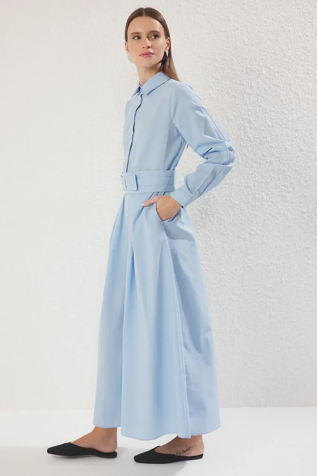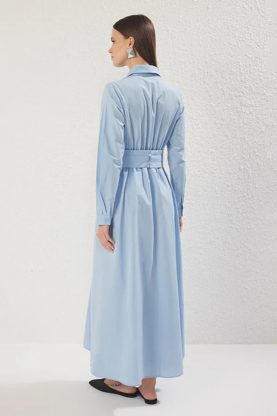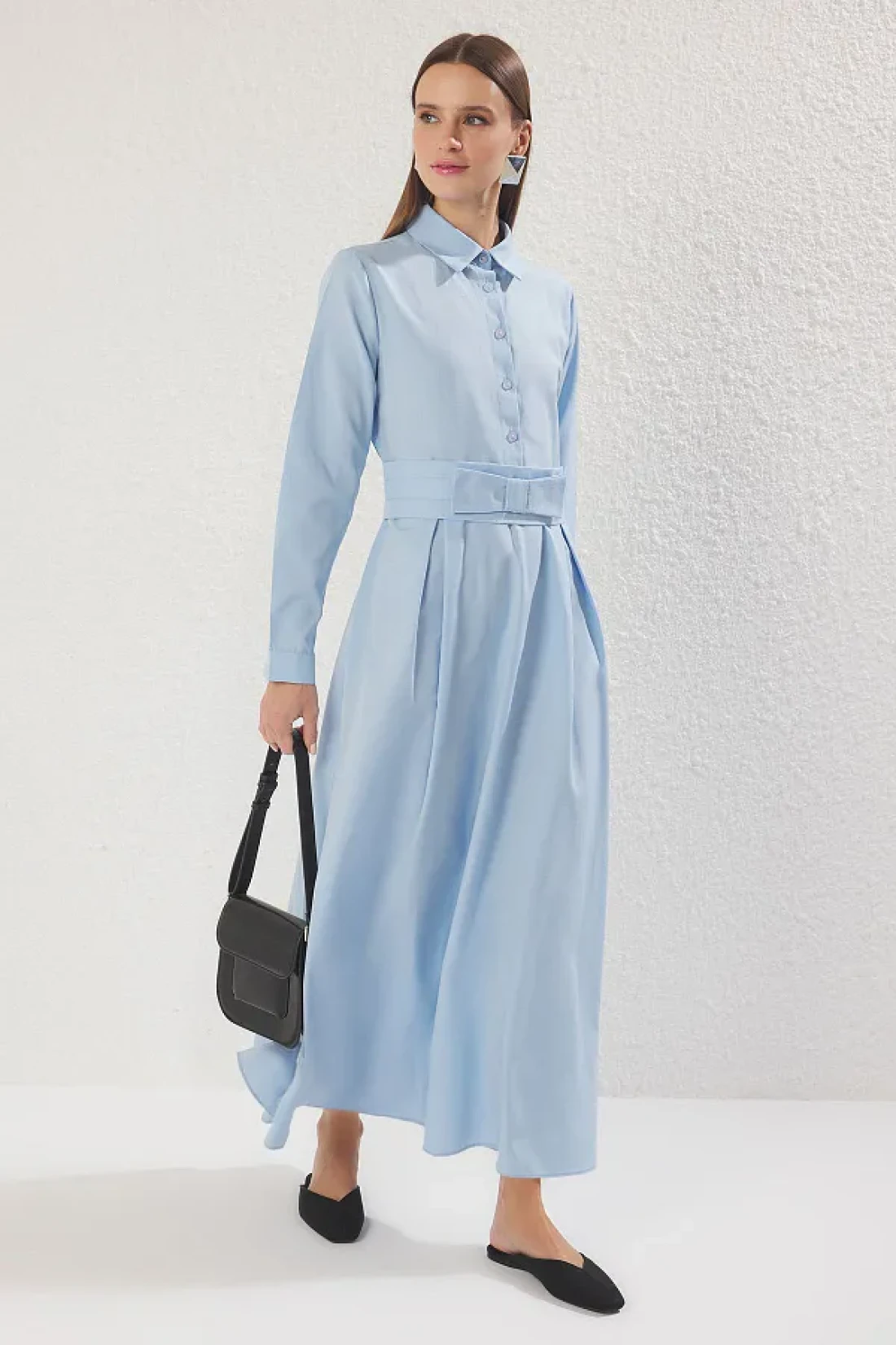 Modest Light Blue Bow Detail Woven Dress Tctss25Eb00122