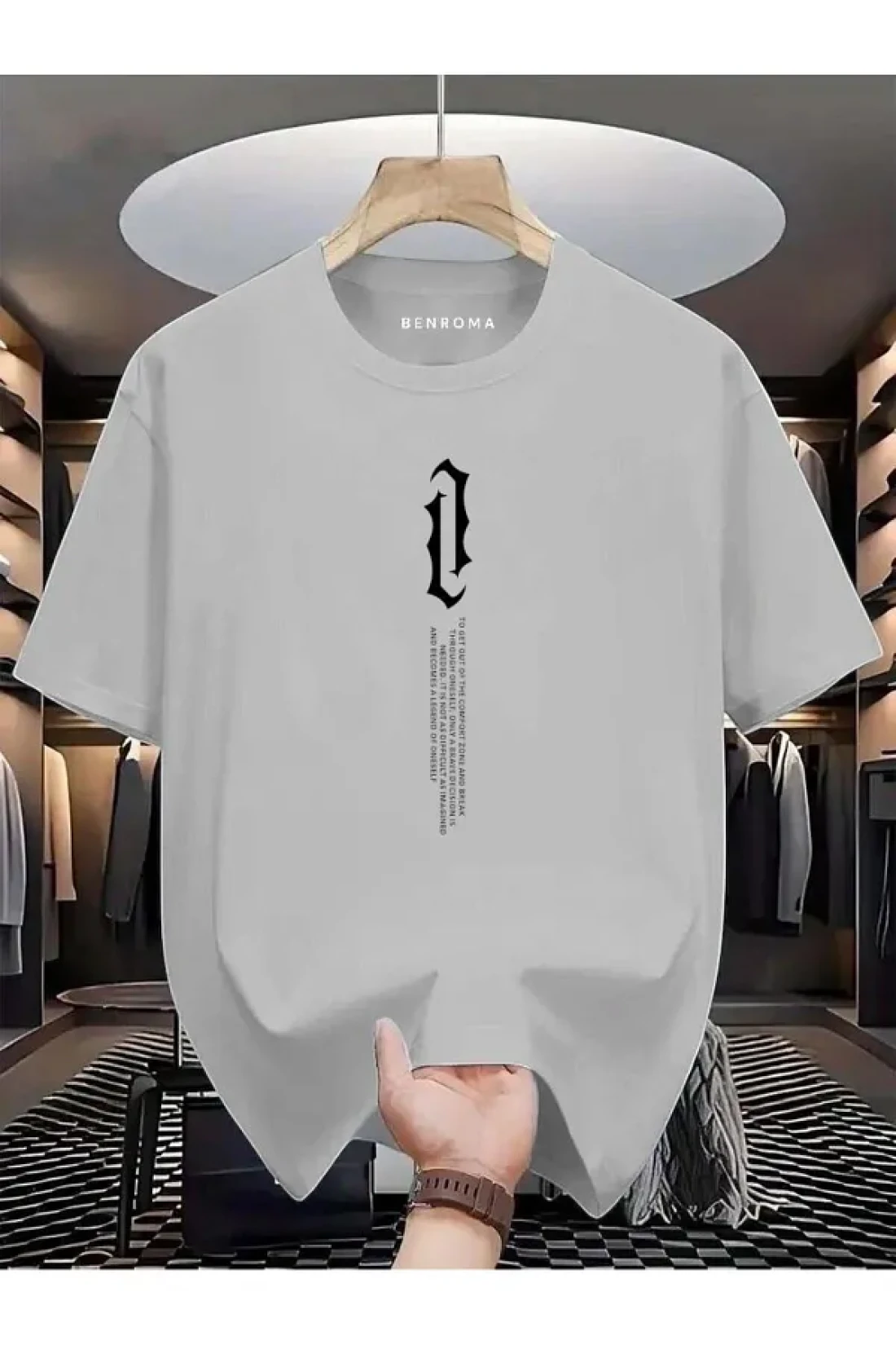 BENROMA 1 Product Is a Gift for Purchases of 6 or More Vertical Text Printed Oversize T-Shirt
