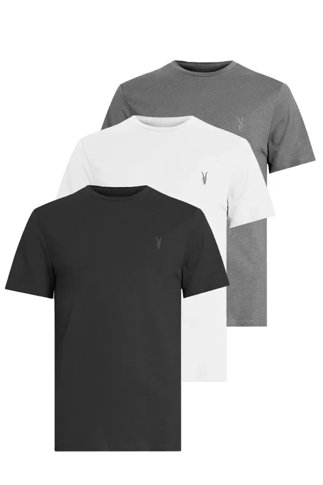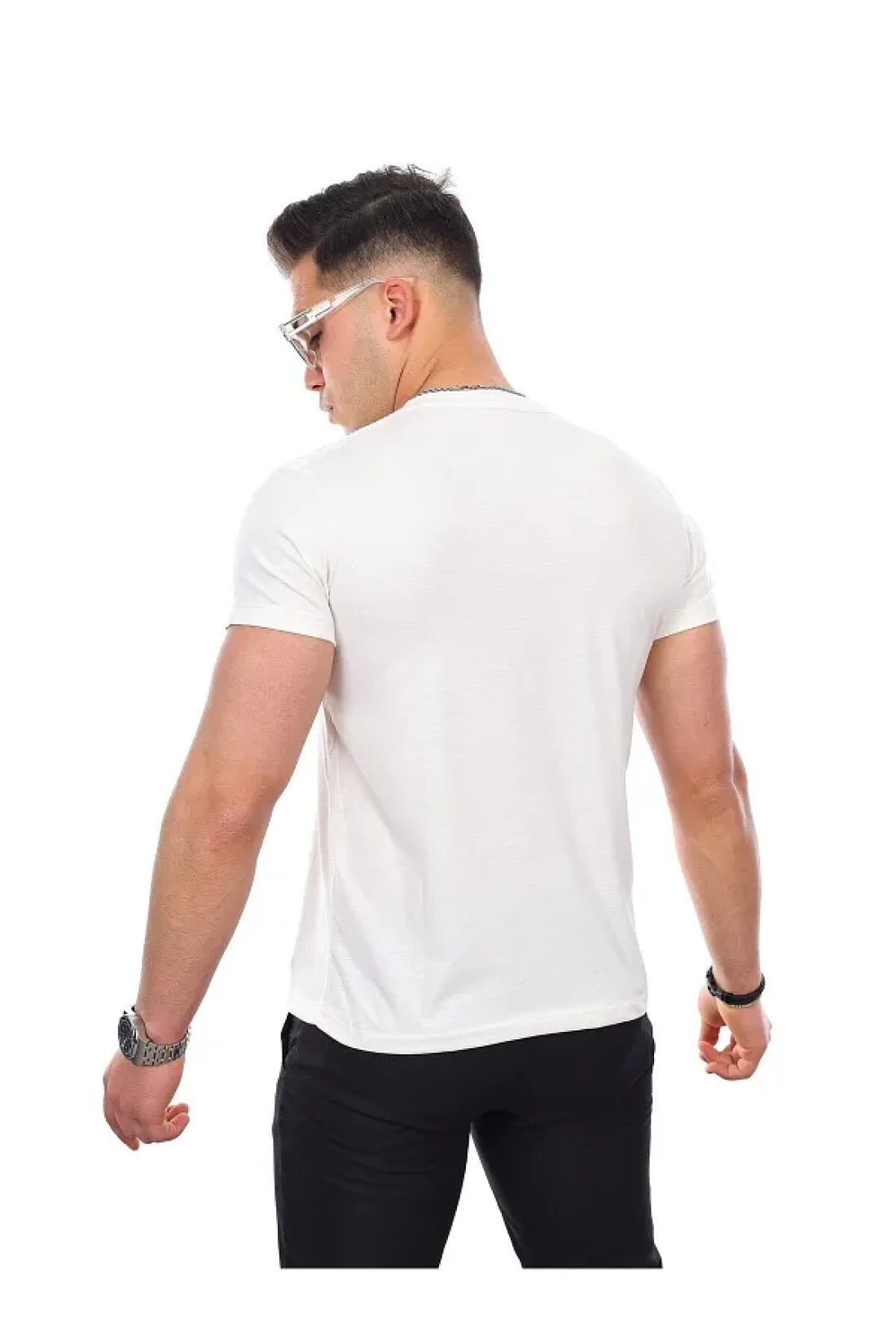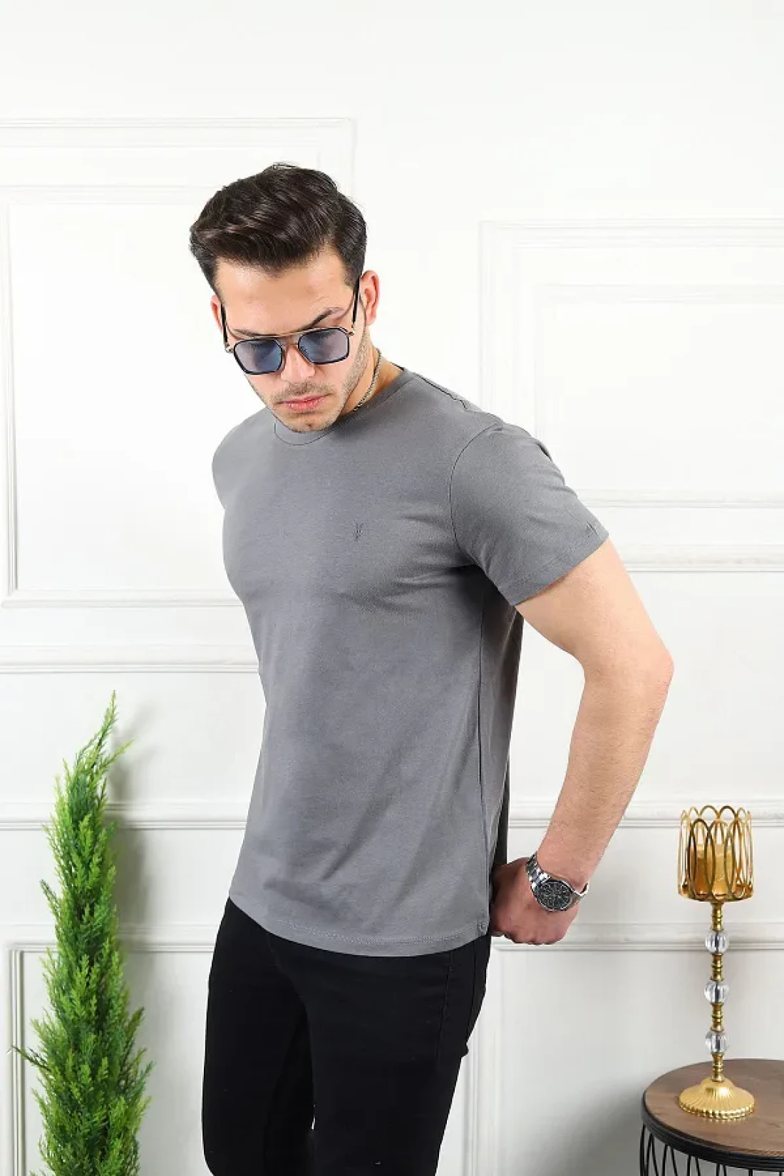 Men's black-gray-white standard fit bicycle collar %100 cotton non-shrinkage 3-pack men's t-shirt the size on the model is m. The material is 100% cotton. The patterns are standard. The collar is a bicycle collar. The product has embroidery on it. There will be no problems like shrinkage after washing the product. The collar side of the men's t-shirt is stitched with a chain. There is Ribbed Knit on the collar of the t-shirt. The advantages of the product include cotton fabric. the advantages of cotton fabric are that there are absolutely no problems such as shrinkage or color fading. Generally, many t-shirts have underarm yellowing and retain odor, and the reason for this is the quality of the fabric used to reduce costs.