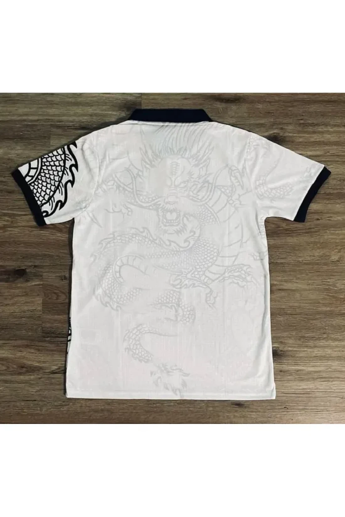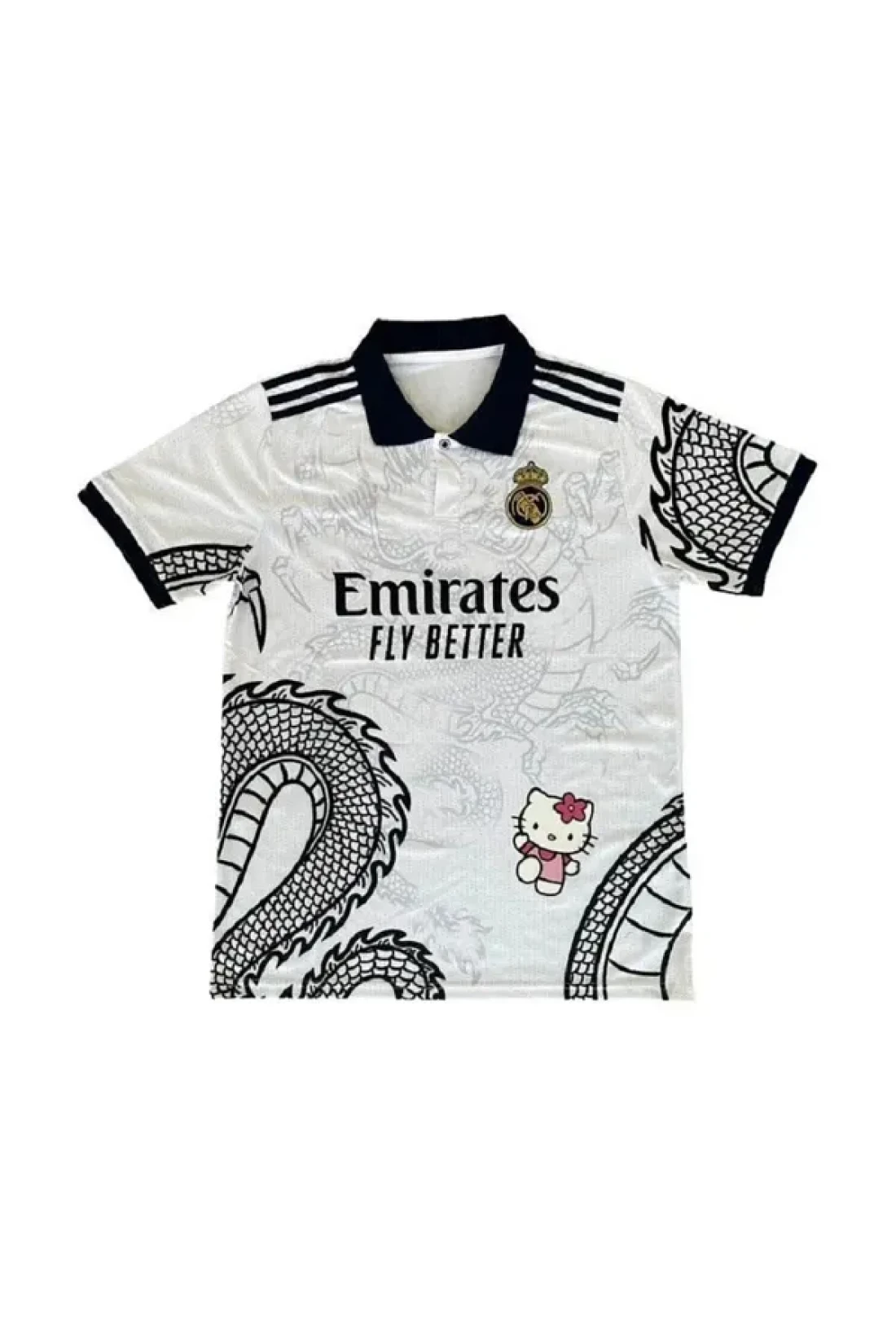 1blood White Kitty Madrid Dragon Jersey Black Button Collar T-Shirt