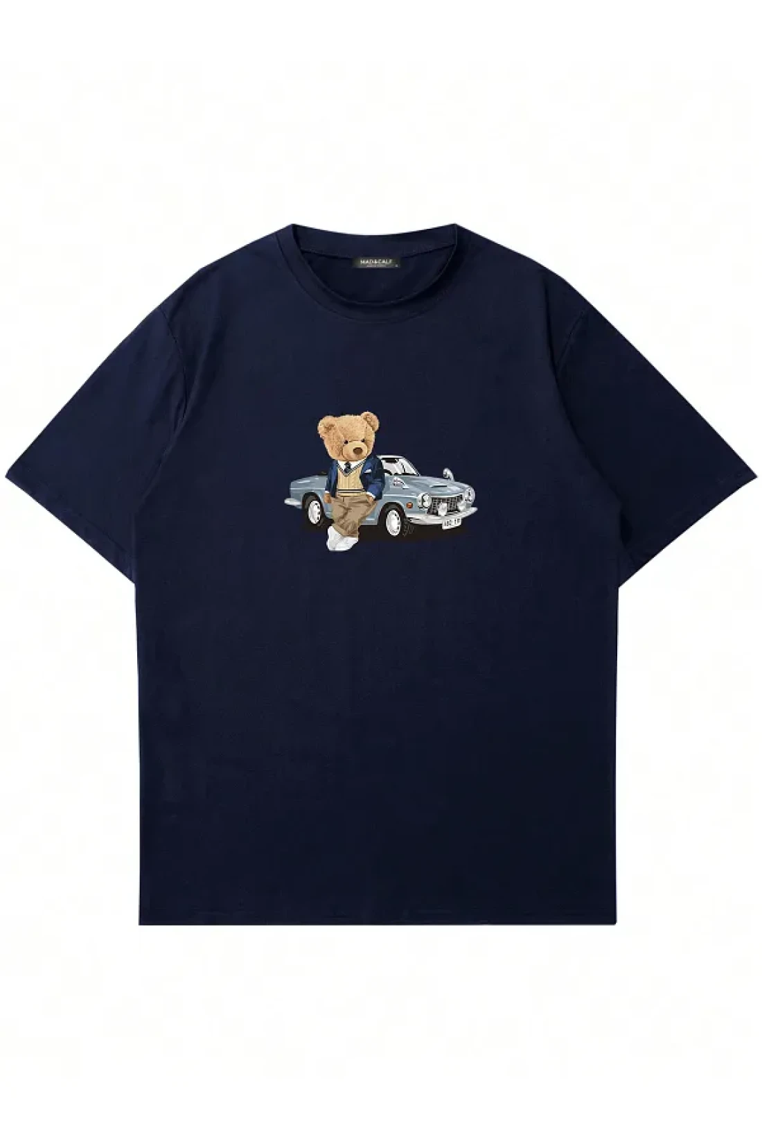 Mad&Calf Unisex Rich Teddy Printed Crew Neck Oversize Tshirt