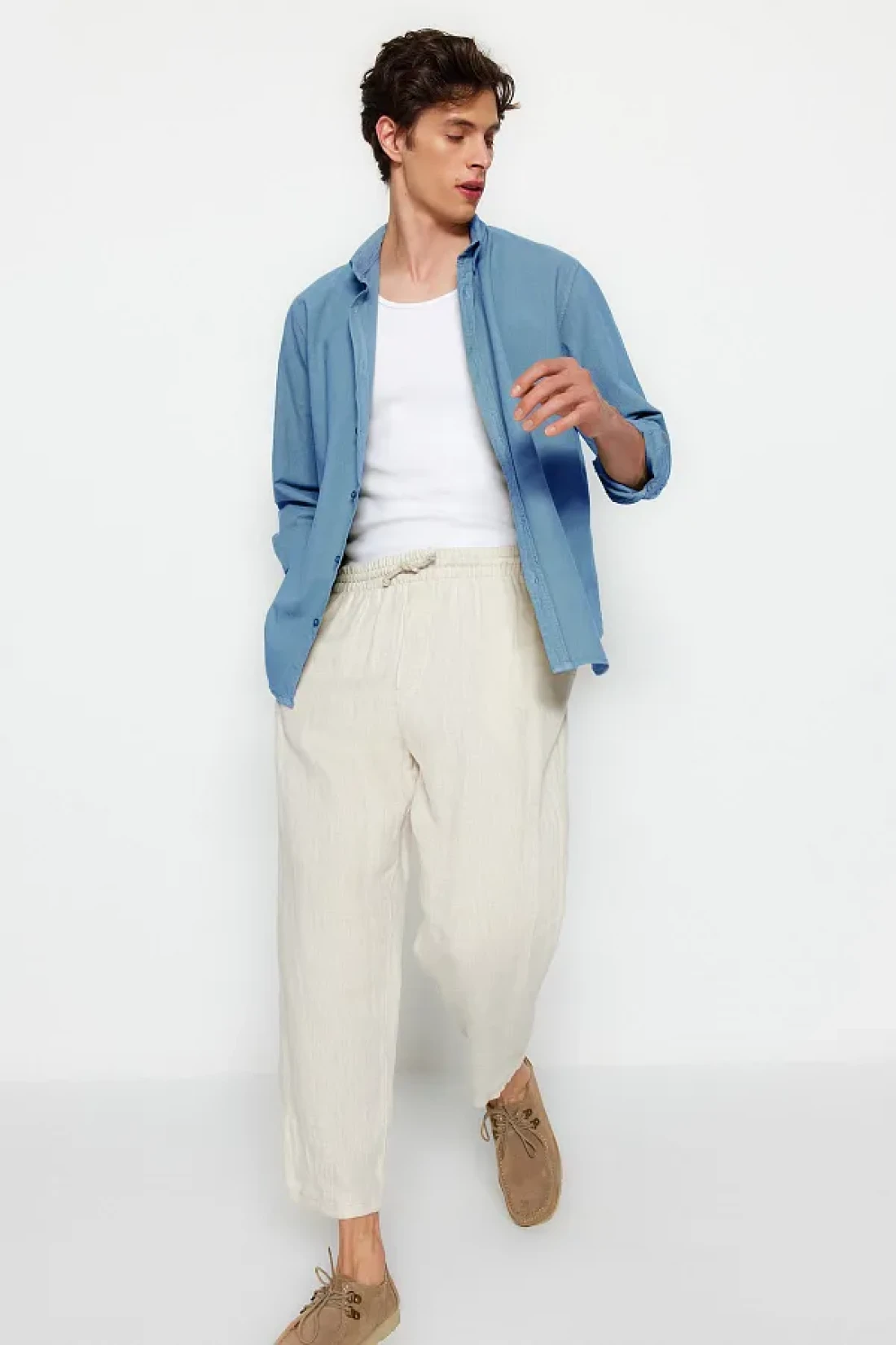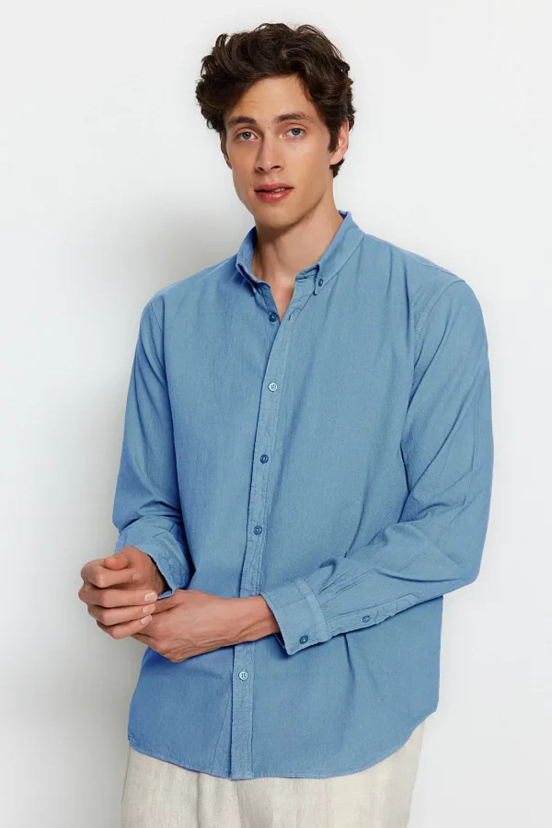 Collection Blue Unisex Regular Fit 100% Cotton Linen Look Shirt Tmnss23Go00099