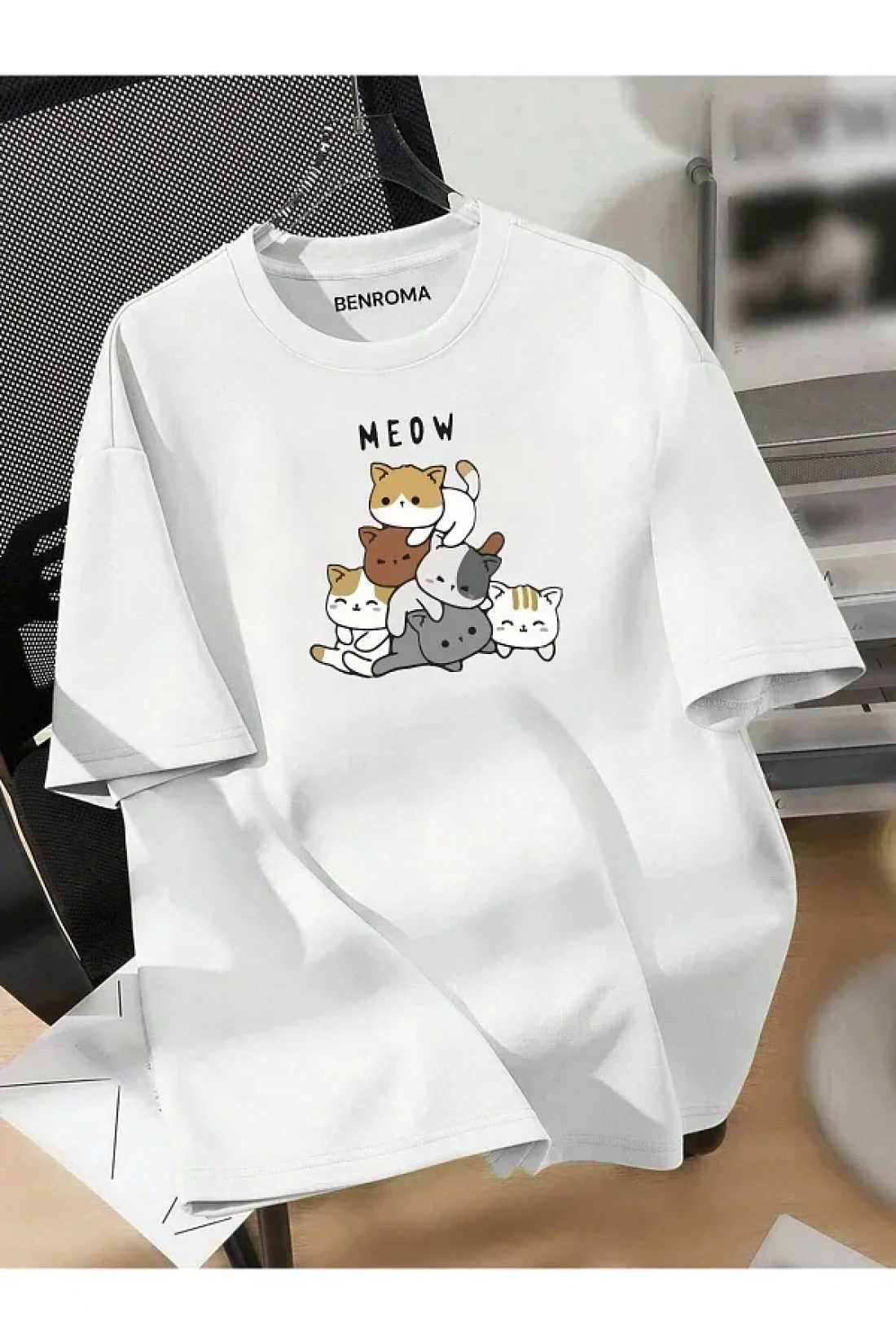It offers all-day comfort and allows your skin to breathe with its 100% cotton material component. This t-shirt, ideal for daily use, offers comfort and elegance together. It provides a modern and simple look with its bicycle collar design. Thanks to its basic silhouette, it adapts to all body types and offers comfortable use. Suitable for both boys and girls as a unisex collectible piece It creates a daily style that can be easily preferred in casual environments. The cat print produced with transfer printing technique offers vibrant and lasting colors. Short sleeve length keeps you cool without restricting your freedom of movement