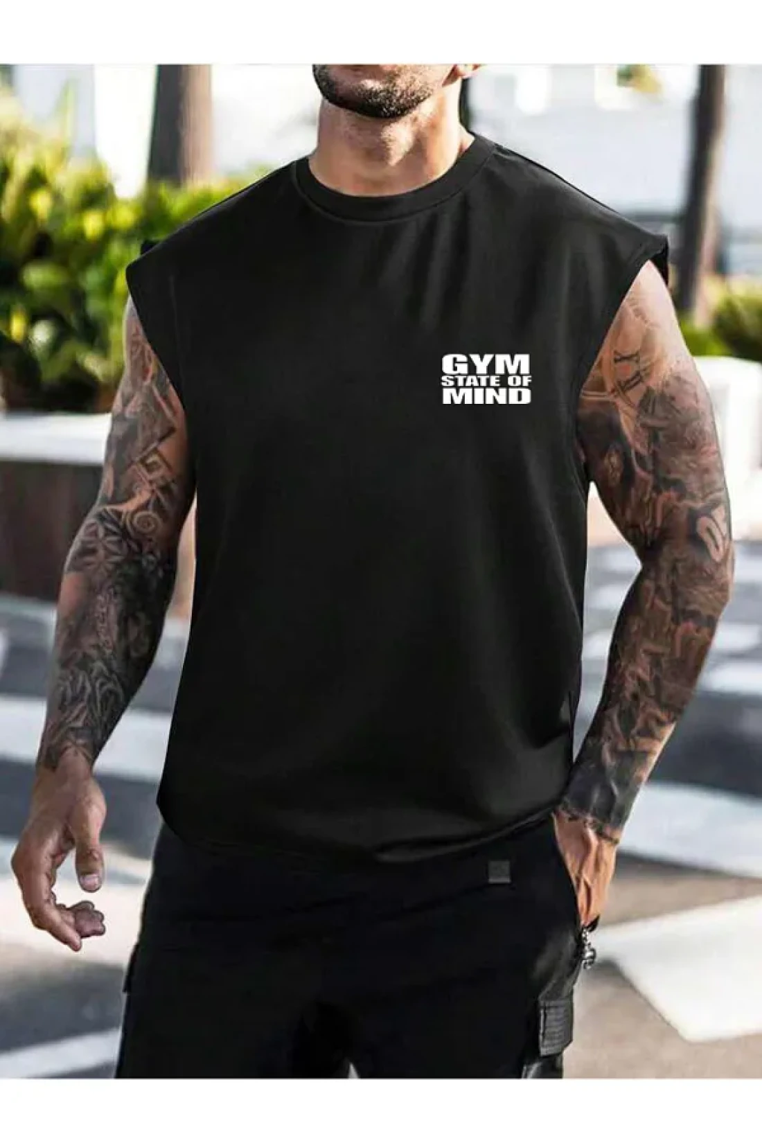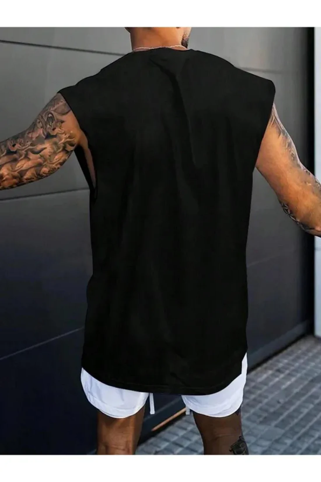 FAVORİST Zero Sleeve GYM Printed Cotton Sports T-shirt