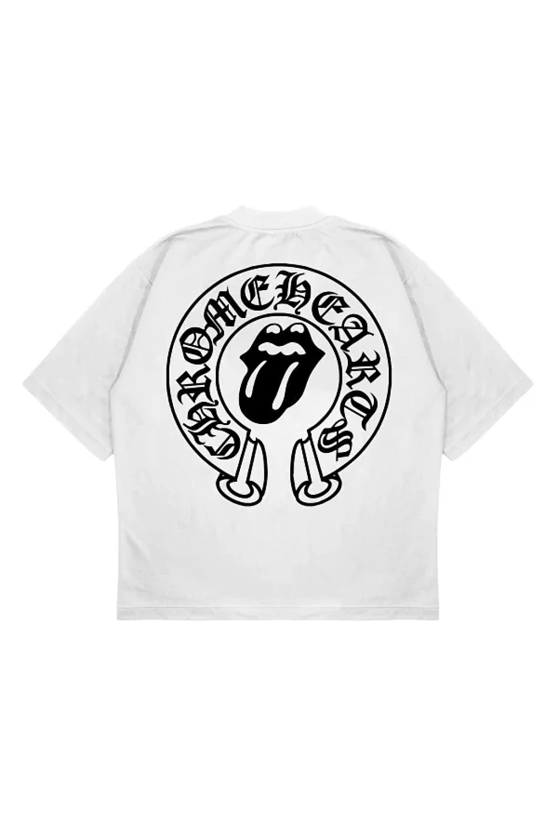 PURE EFFECT Unisex Oversize Chrome Hearts & Rolling Stone Printed Boxy Fit Thick Fabric T-Shirt