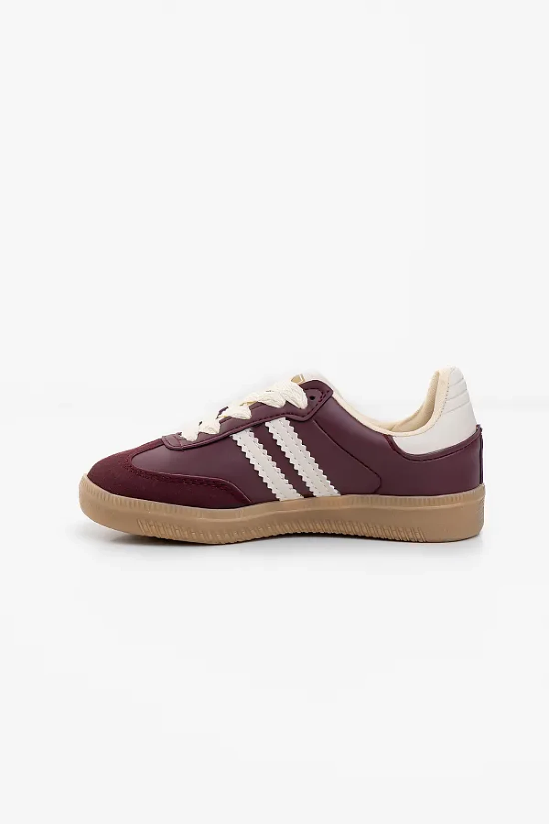 - thanks to the lace-up design, it allows the shoes to fit your feet perfectly, providing maximum comfort. This sneaker, which you can prefer in casual and daily environments, is suitable for daily use. It offers an eye-catching detail with its burgundy color, while giving a modern and dynamic look with its striped pattern. The inner material is made of textile