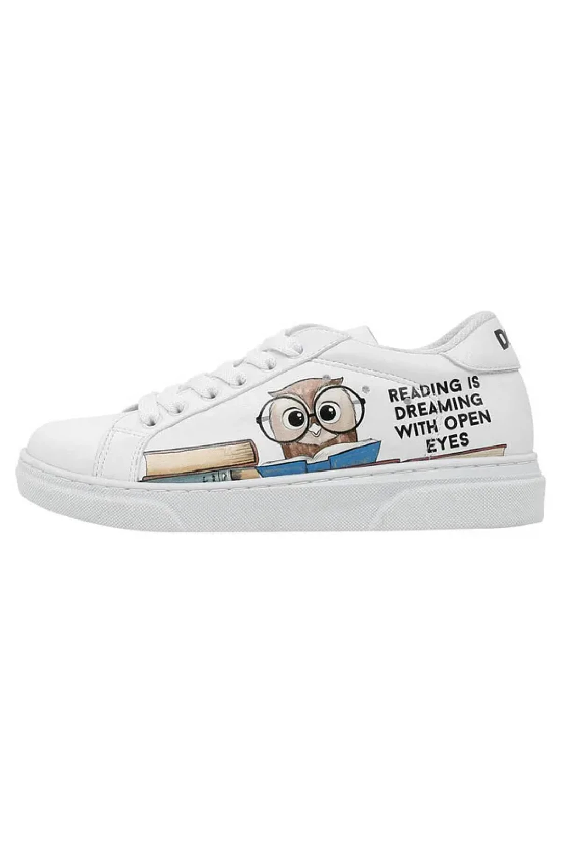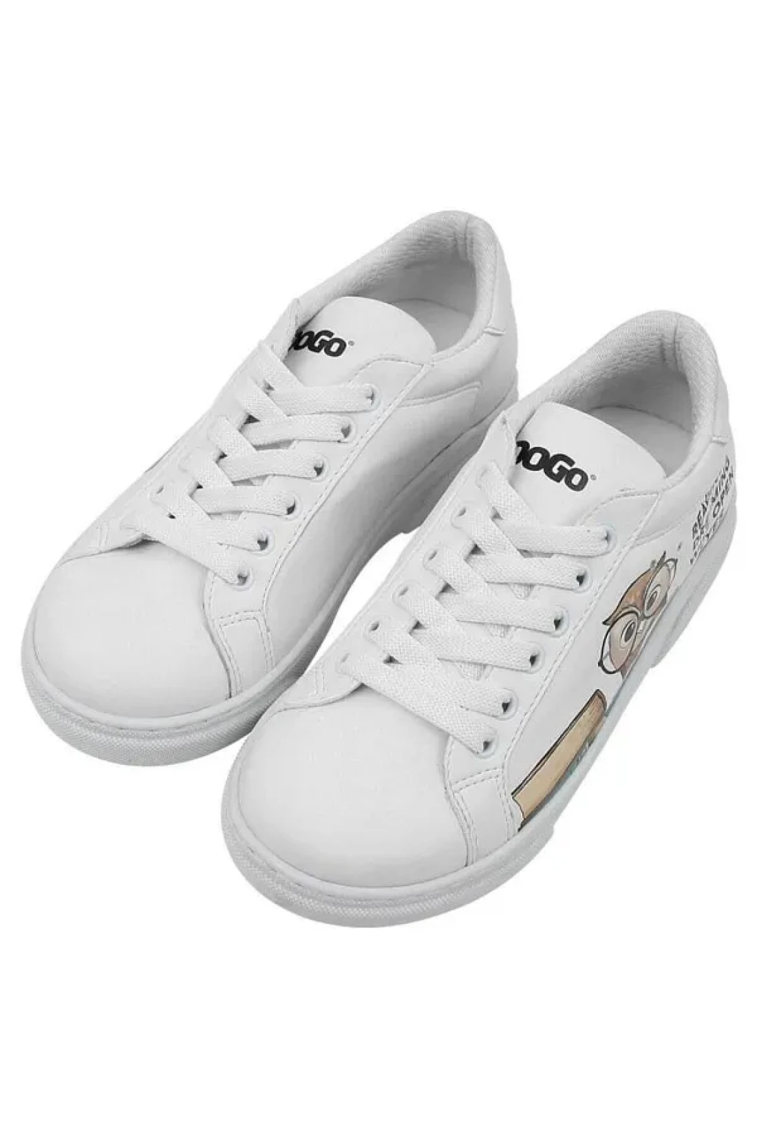Dogo Unisex Kids Vegan Leather White Sneakers - The Wise Owl Design