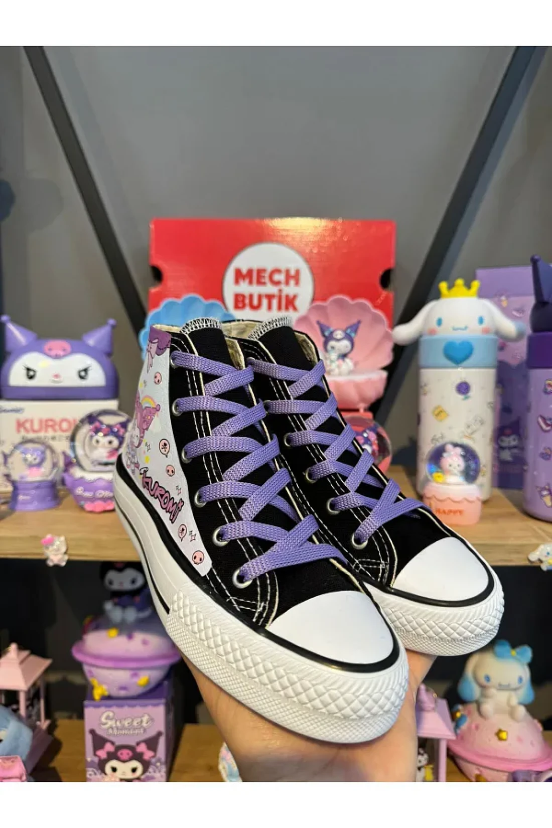 MECH BUTİK Kuromi Full Printed Black High Top Girls' Sports Shoes Sneaker