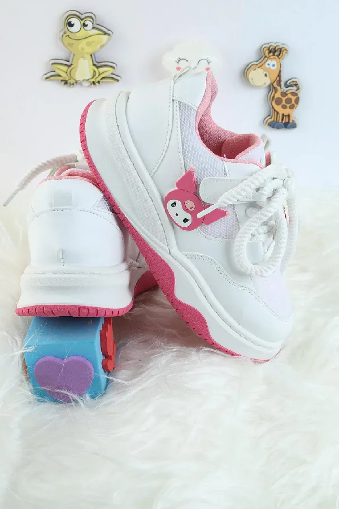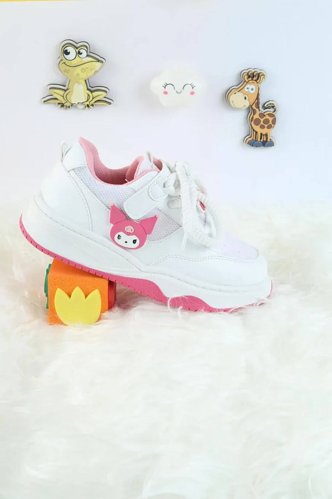Moda Lime Unisex Children's Sports Shoes Kuromi Special Design Lace-Up and Velcro Sneakers
