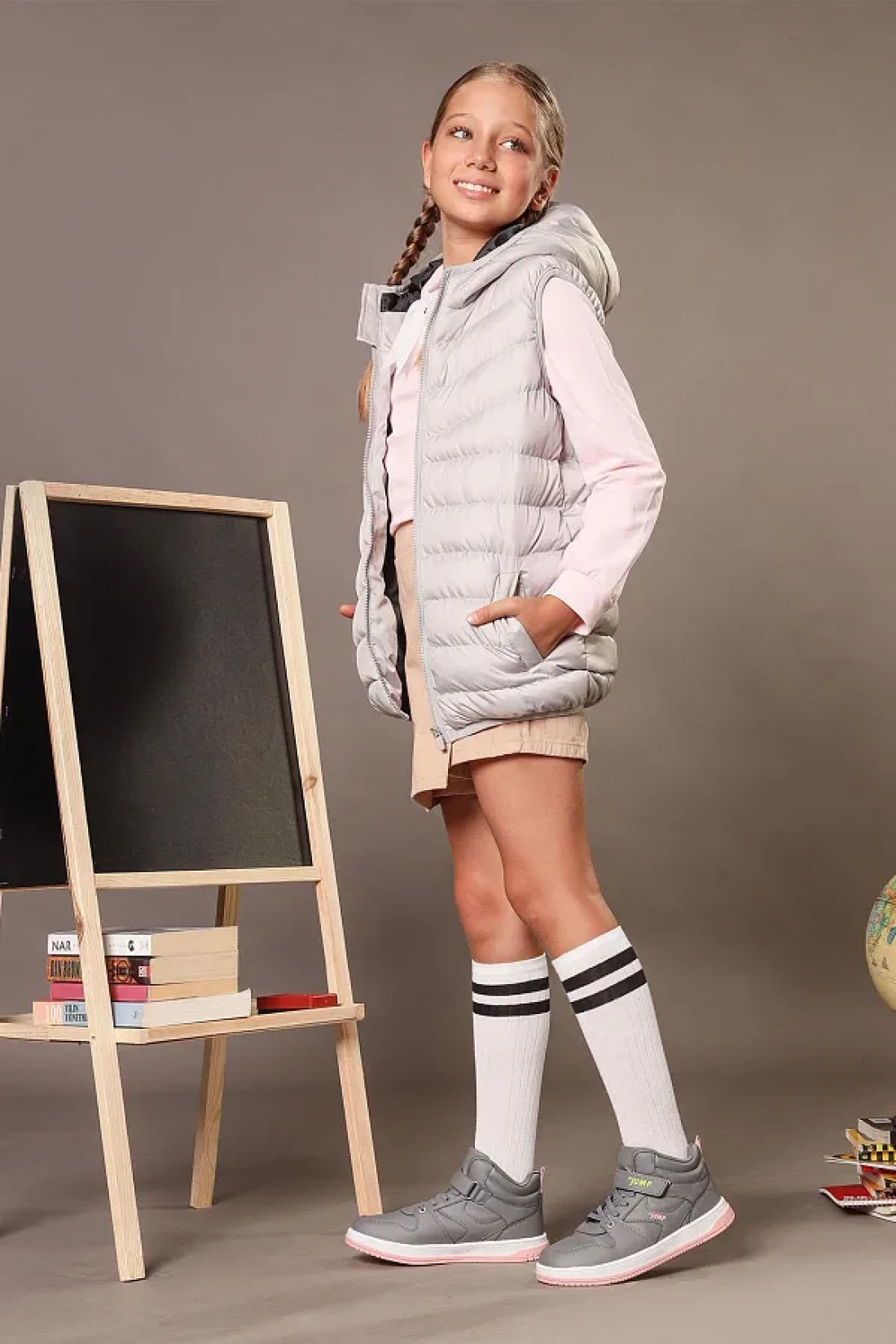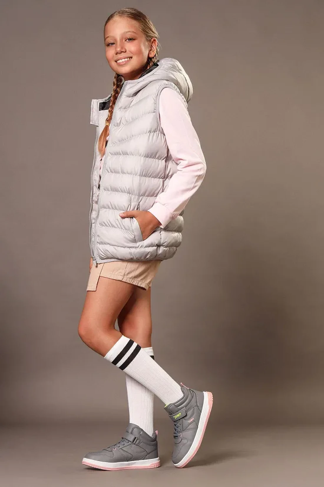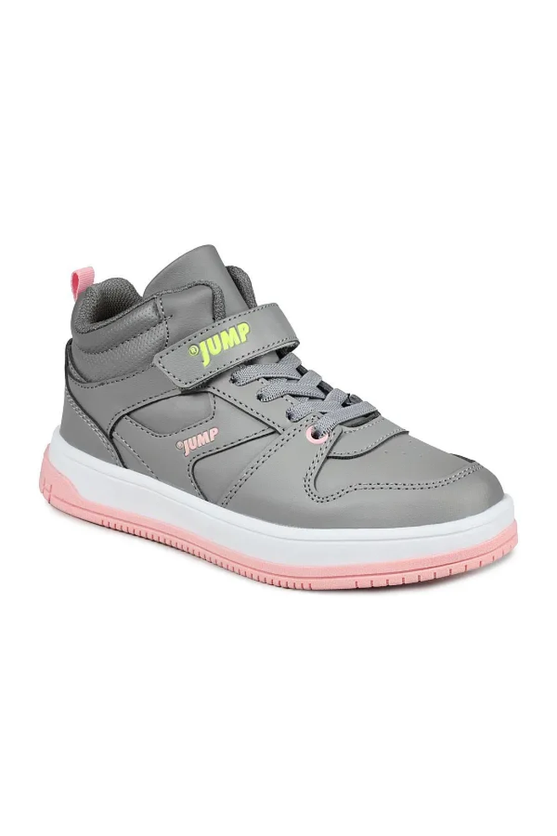 Jump 27758 Velcro High Top Gray - Salmon Pink Girl's Sneaker Casual Sneakers