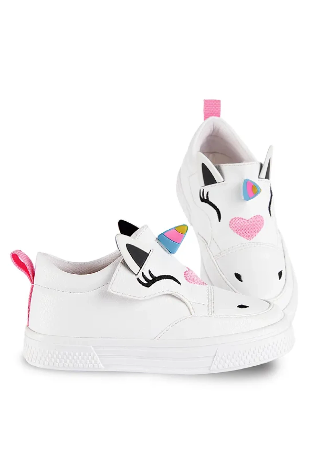 Sneakers with unicorn applique on top, 3d unicorn horns, can be put on and taken off with velcro. It is made of artificial leather. All denokids products are manufactured with child safety in mind and have been passed through needle detectors. Skin: 80% pvc, 18% polyester, 2% pu, lining: 100% polyester, sole: thermo pvc