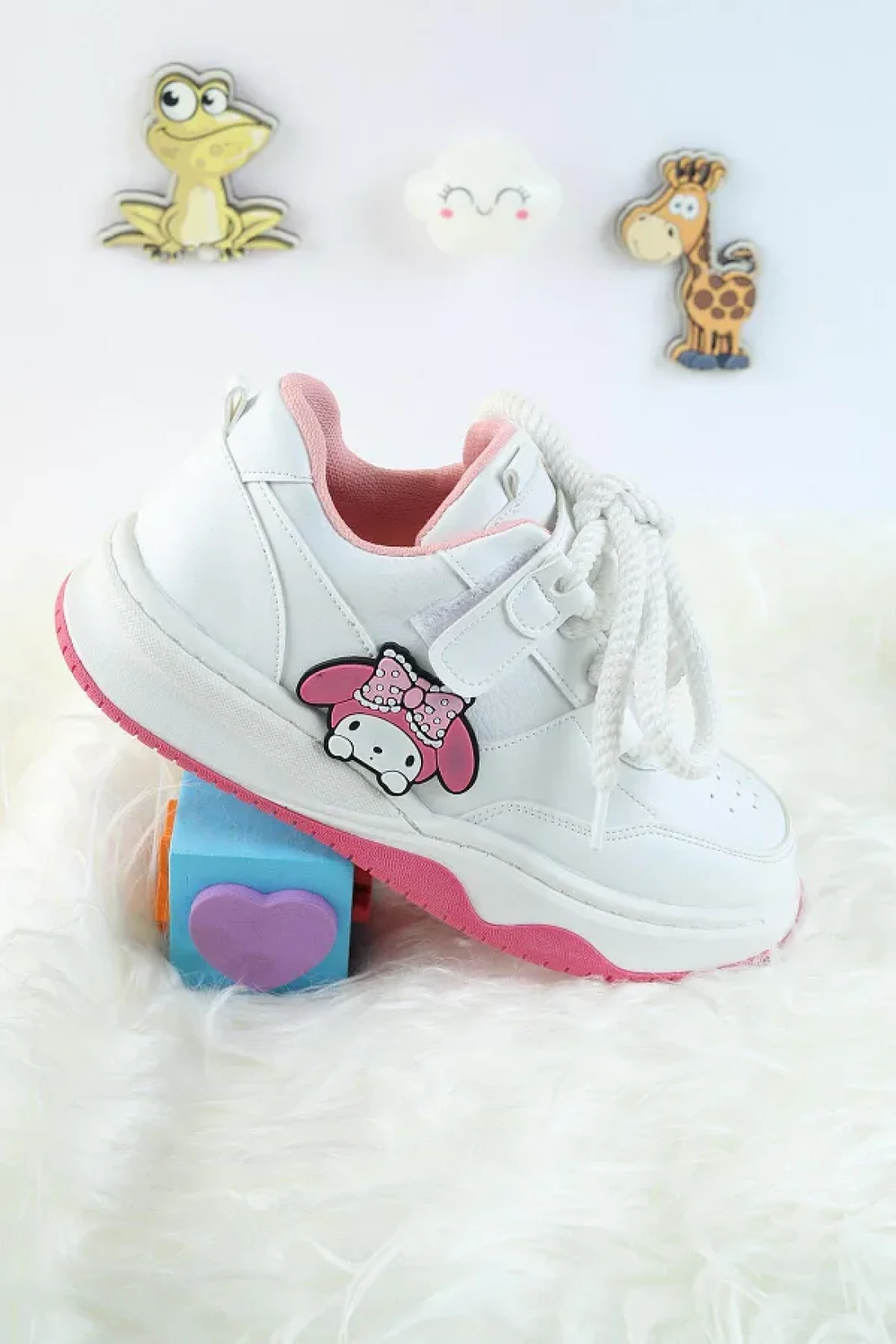 Moda Lime Unisex Children's Sports Shoes Kuromi Special Design Lace-Up and Velcro Sneakers