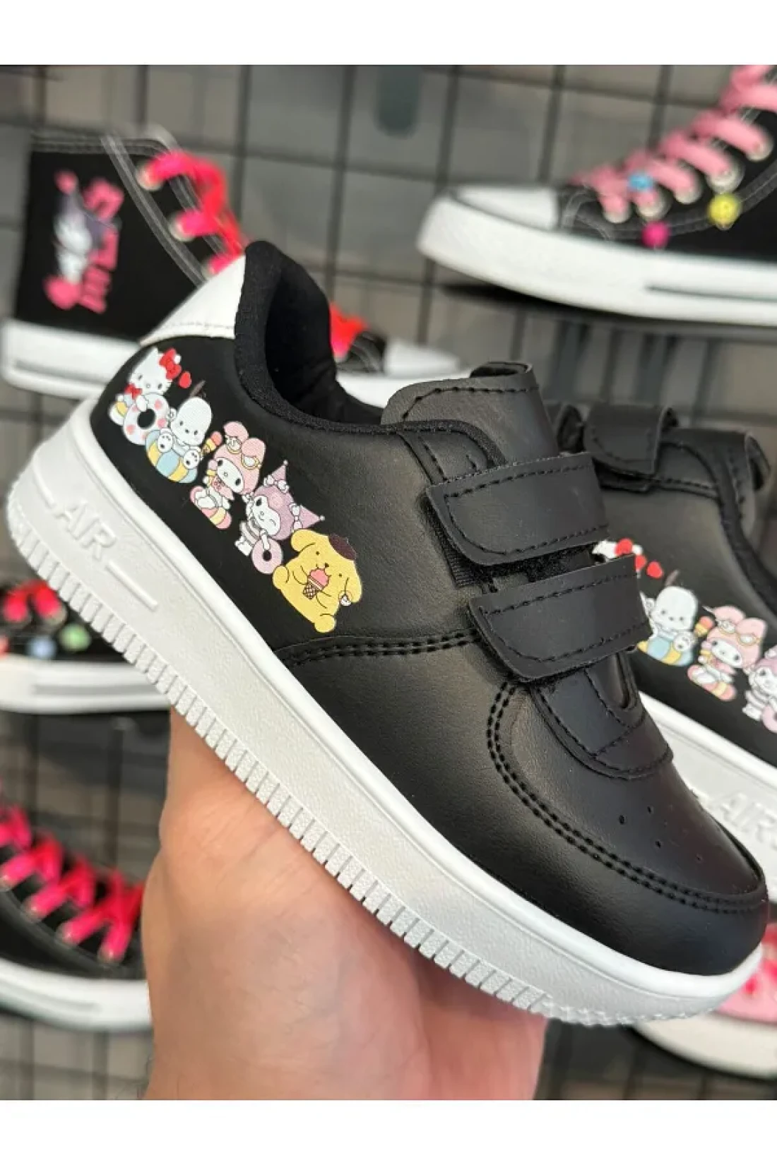 MECH BUTİK Kuromi and Friends Printed Black Velcro Children's Sports Shoes