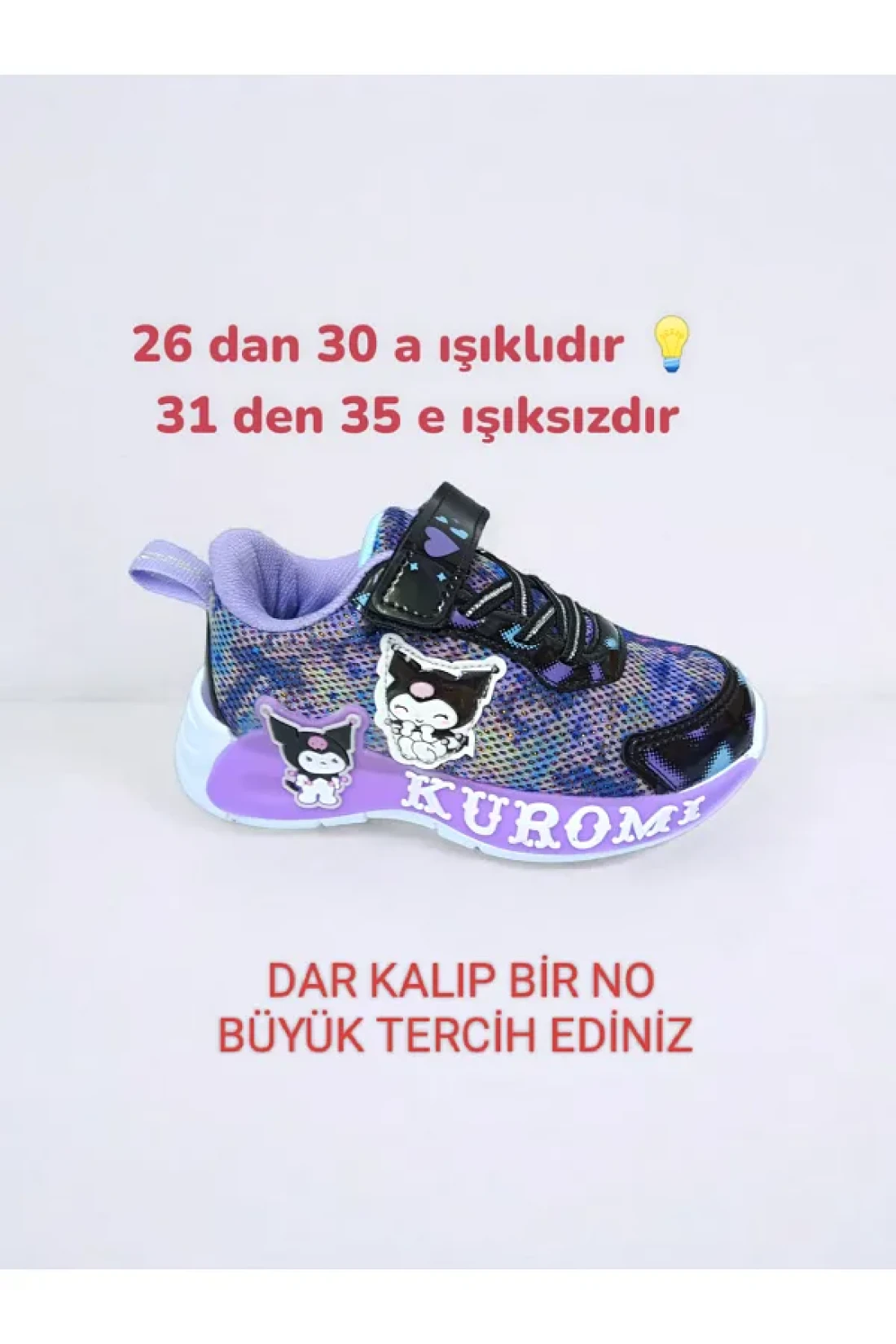 Offering comfort and elegance together, kuromi lighted girls' sports shoes are ideal for daily use. Thanks to its flexible structure, it does not restrict children's freedom of movement and provides a comfortable experience. It can be easily put on and taken off with its band-style fastening