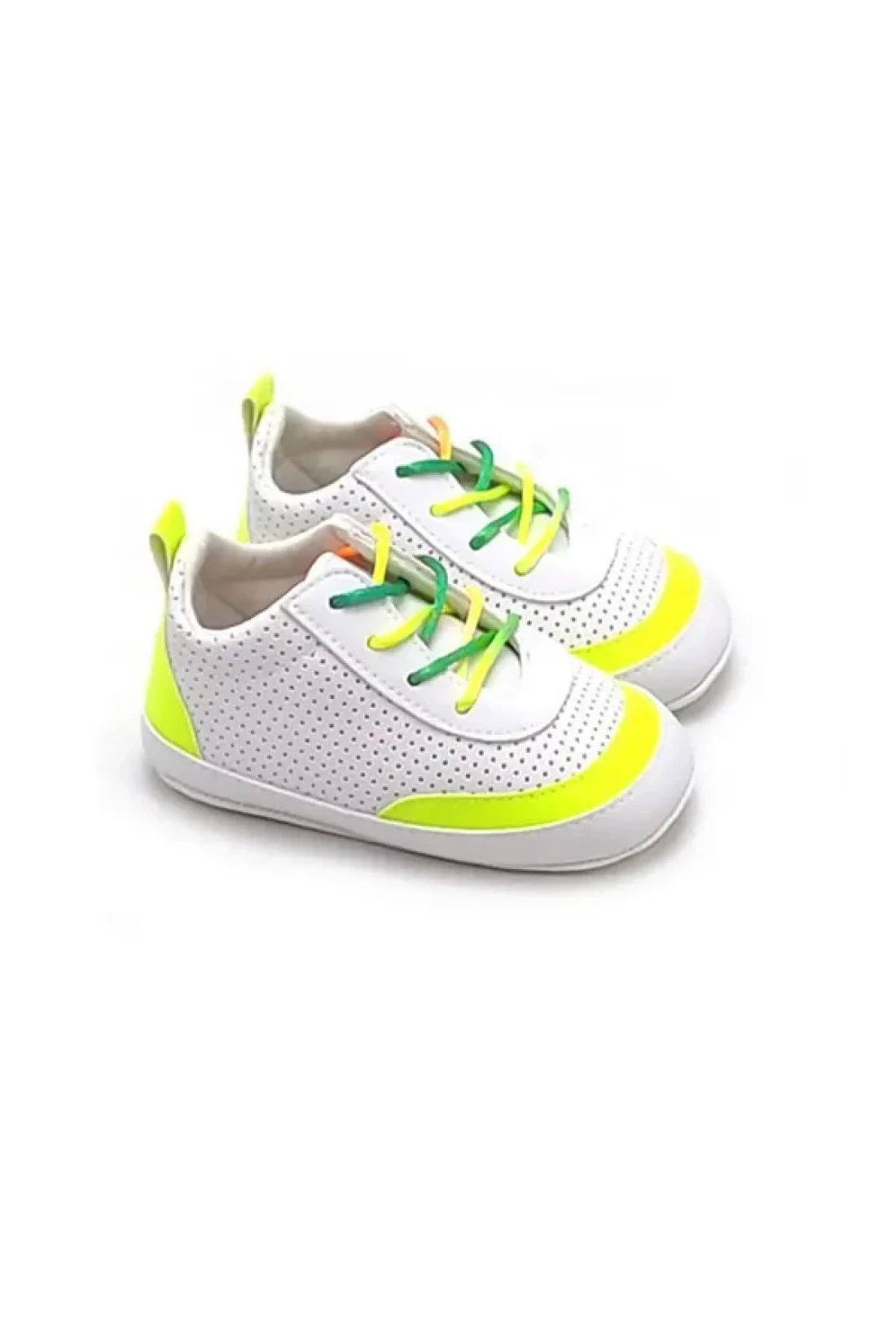 Designed considering your baby's foot health, soft-soled sports booties. These shoes, ideal for daily use, allow your baby to move comfortably. It is specially produced for baby girls, attracts attention with its stylish and colorful design. Thanks to its heel-less structure, it supports your baby's natural walking and provides comfort. It offers both elegance and comfort with its thin-heeled design. The textile material used in the insole gently wraps the foot, providing maximum comfort. The outer surface made of artificial leather promises easy cleaning and durability. Thanks to its laced structure, it provides a secure use by ensuring the shoe fits your baby perfectly.