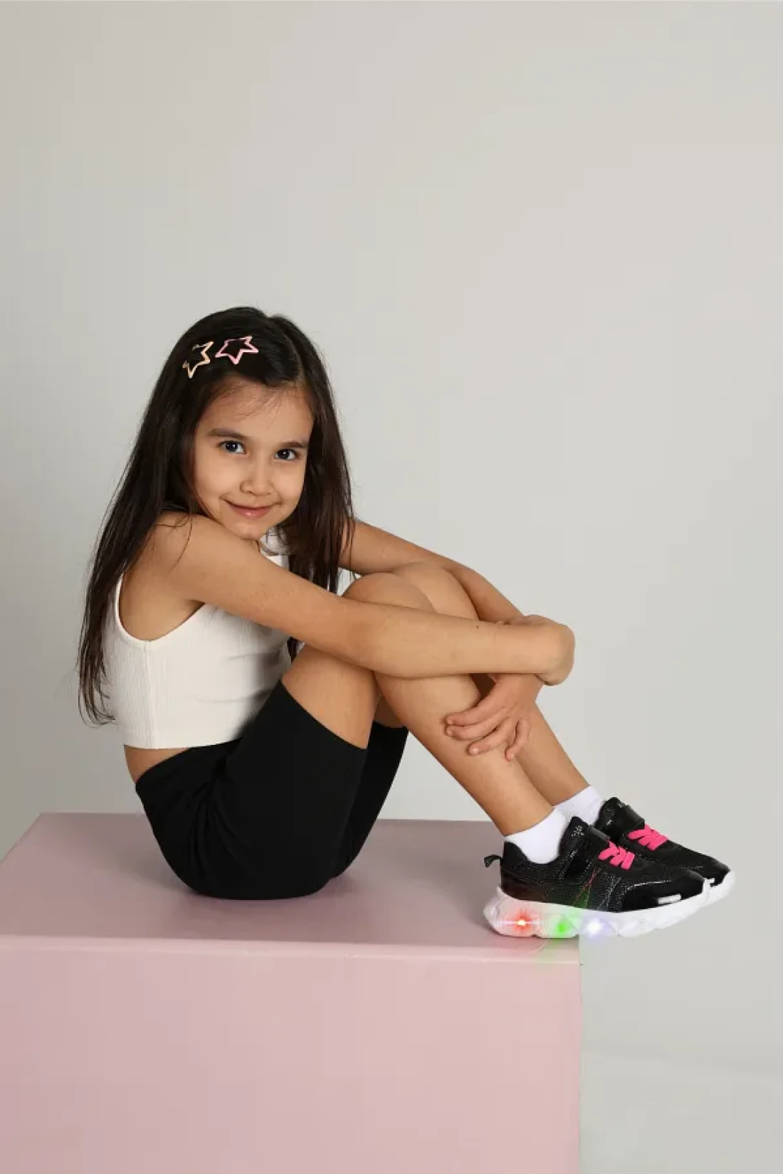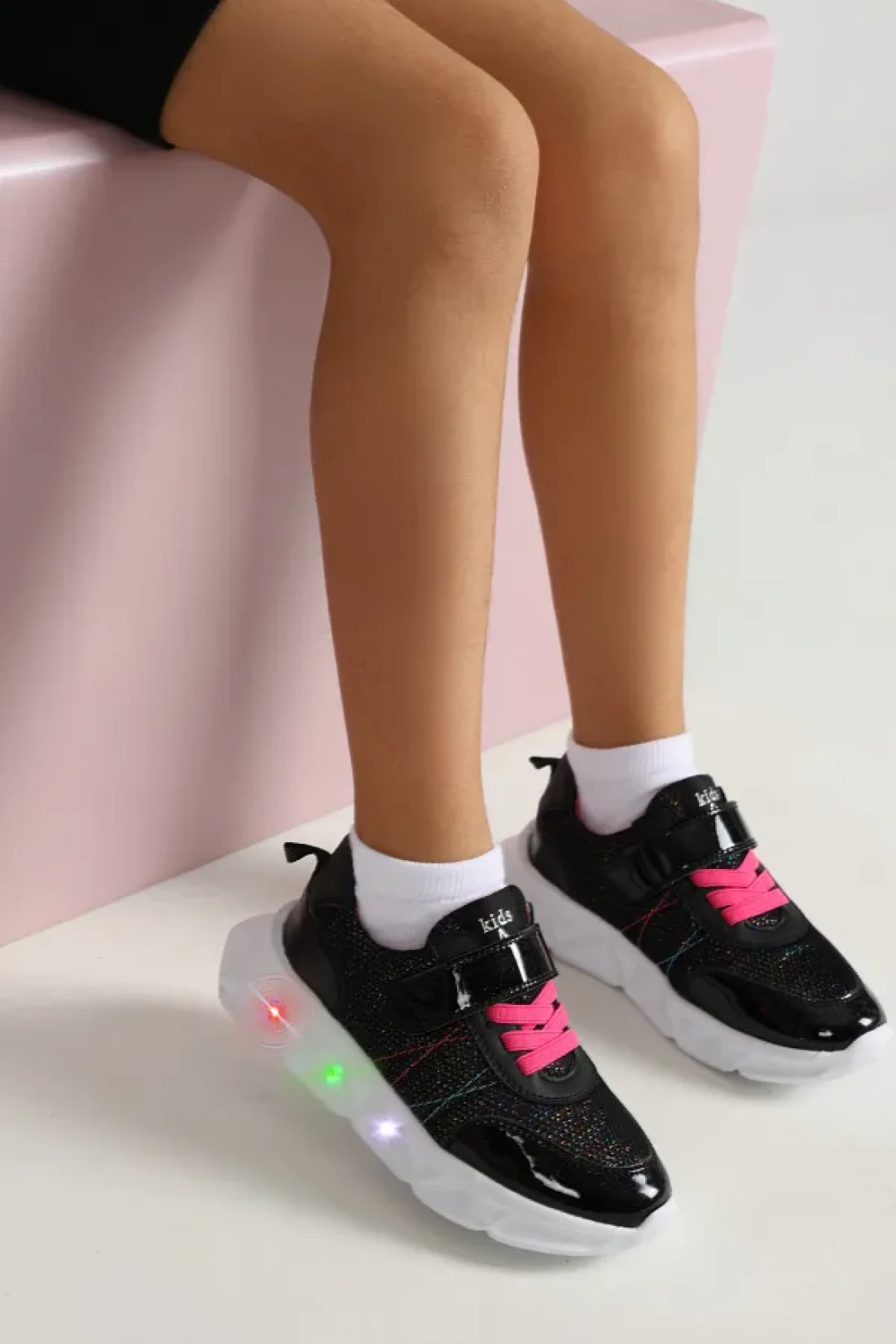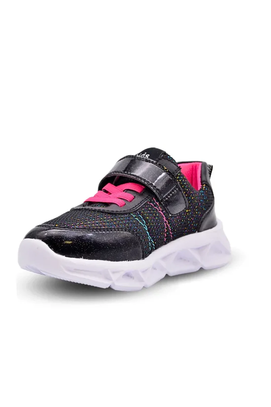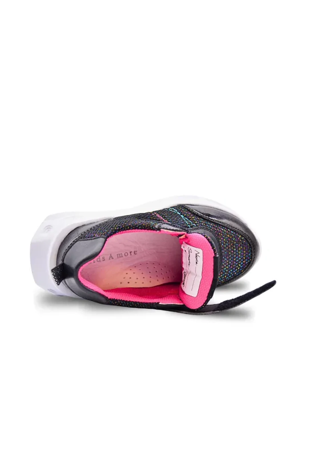 kids A more Valeria Glitter - Girl's Black Sports Shoes, Air Mesh and Vegan Leather, Lighted Sole