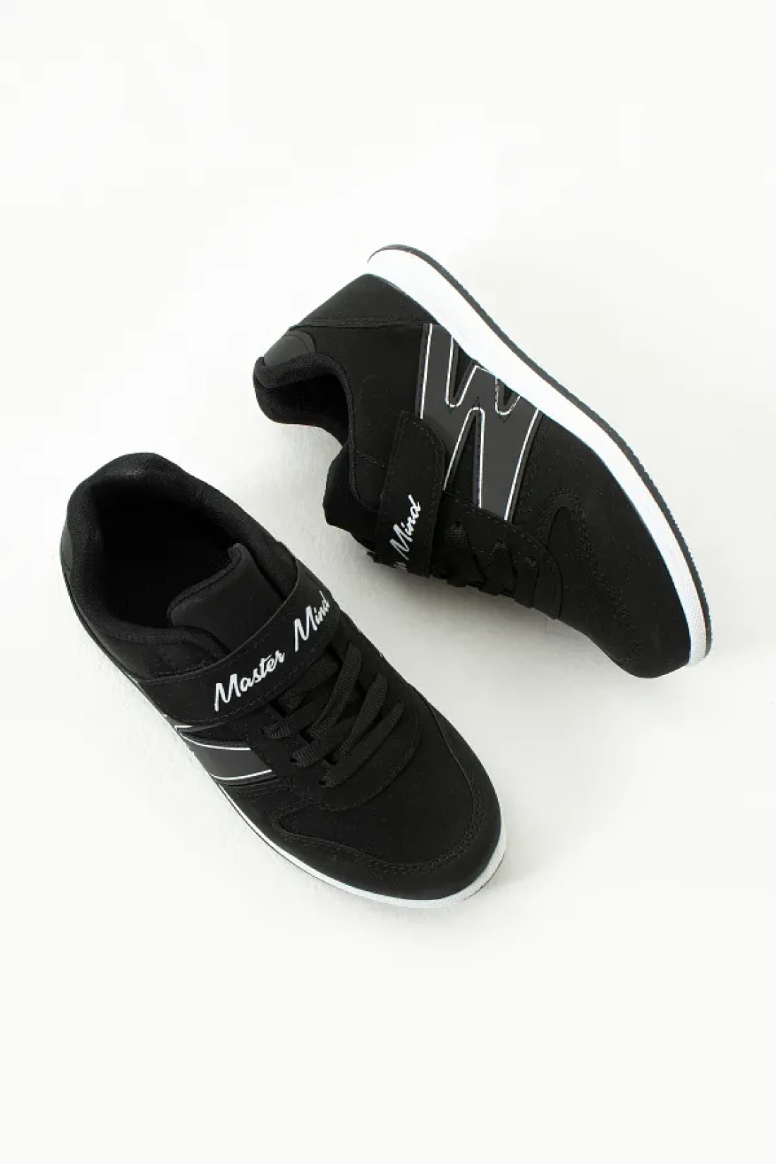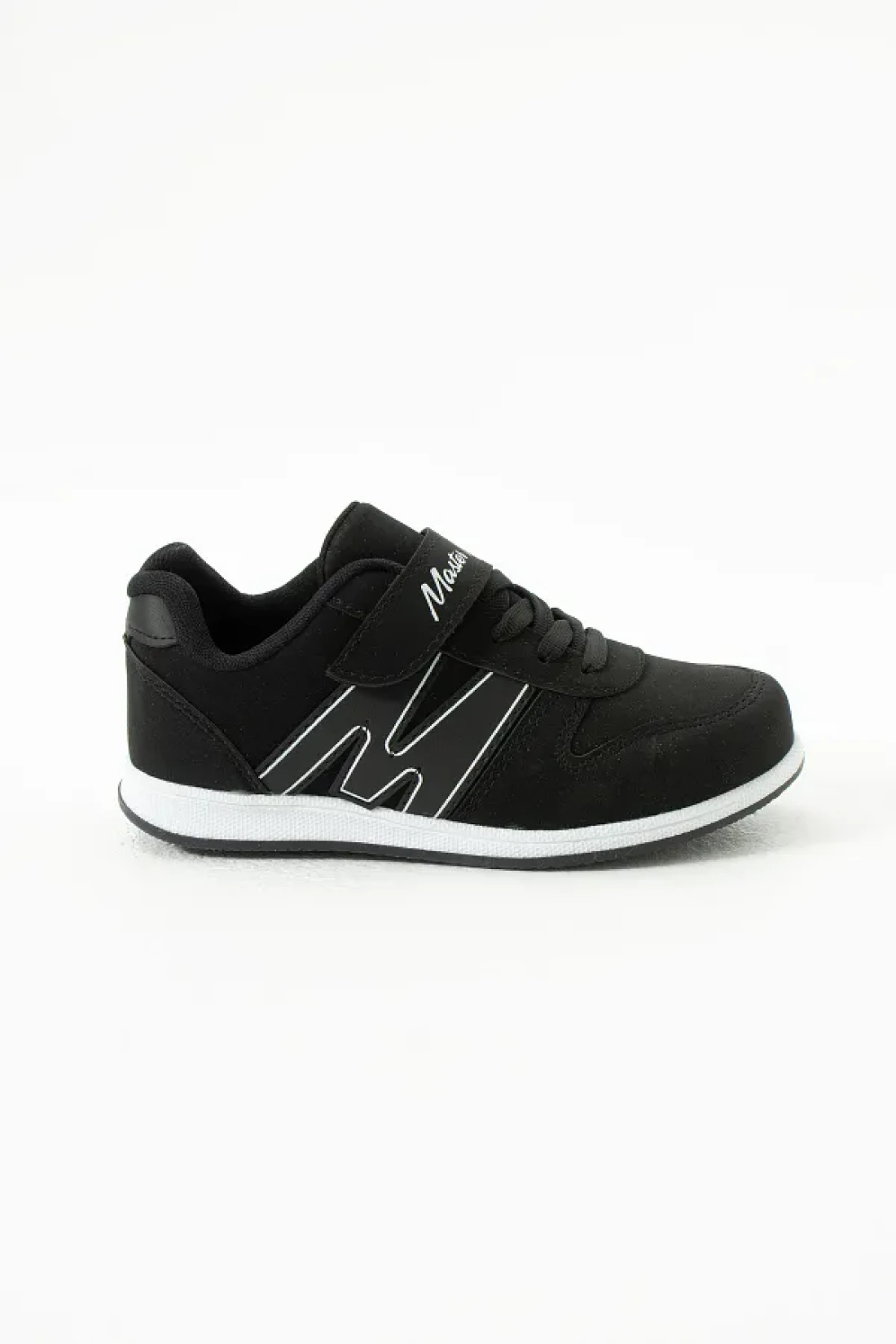 BOUIS Black and White Single Velcro Flexible Faux Leather Children's Sneakers - m Series Sneakers