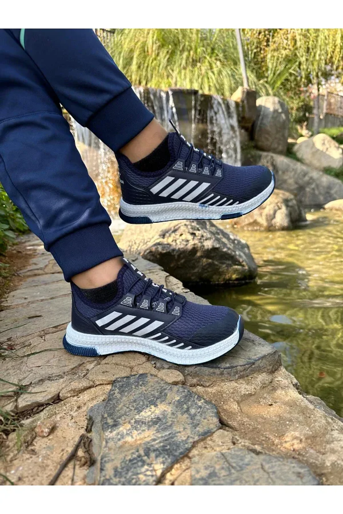 A stylish and comfortable sports shoe suitable for both girls and boys with its unisex design. This shoe, which stands out with its navy blue color, can be easily combined with any summer outfit. Thanks to the orthopedic sole support, it helps children take comfortable steps while protecting their foot health. Light base material that ensures children's comfort throughout the day with its lightweight structure. The casual design, ideal for daily use, accompanies you in every environment, from school to park. Thanks to its elastic fastening method, it offers practical wear and removal