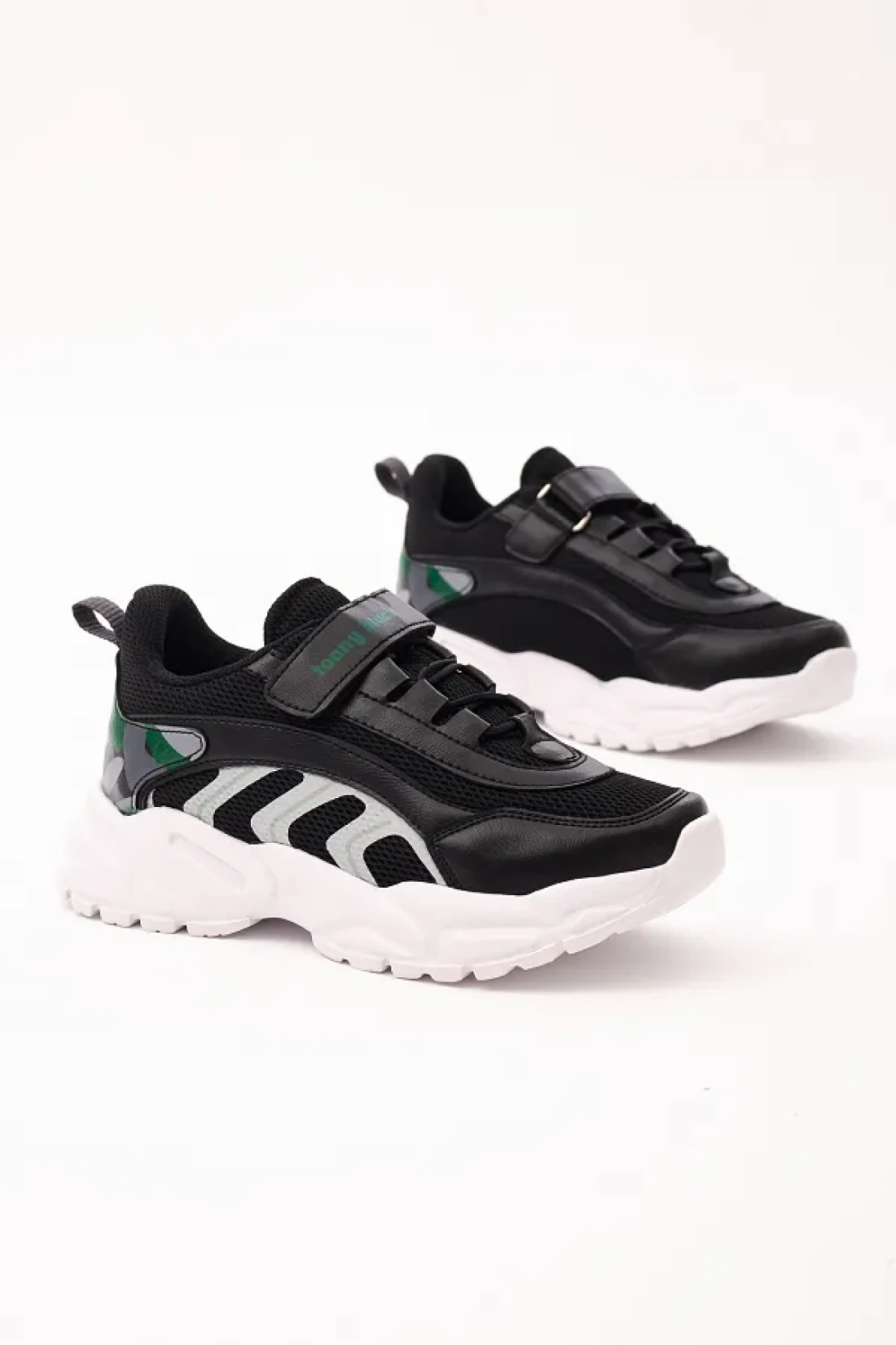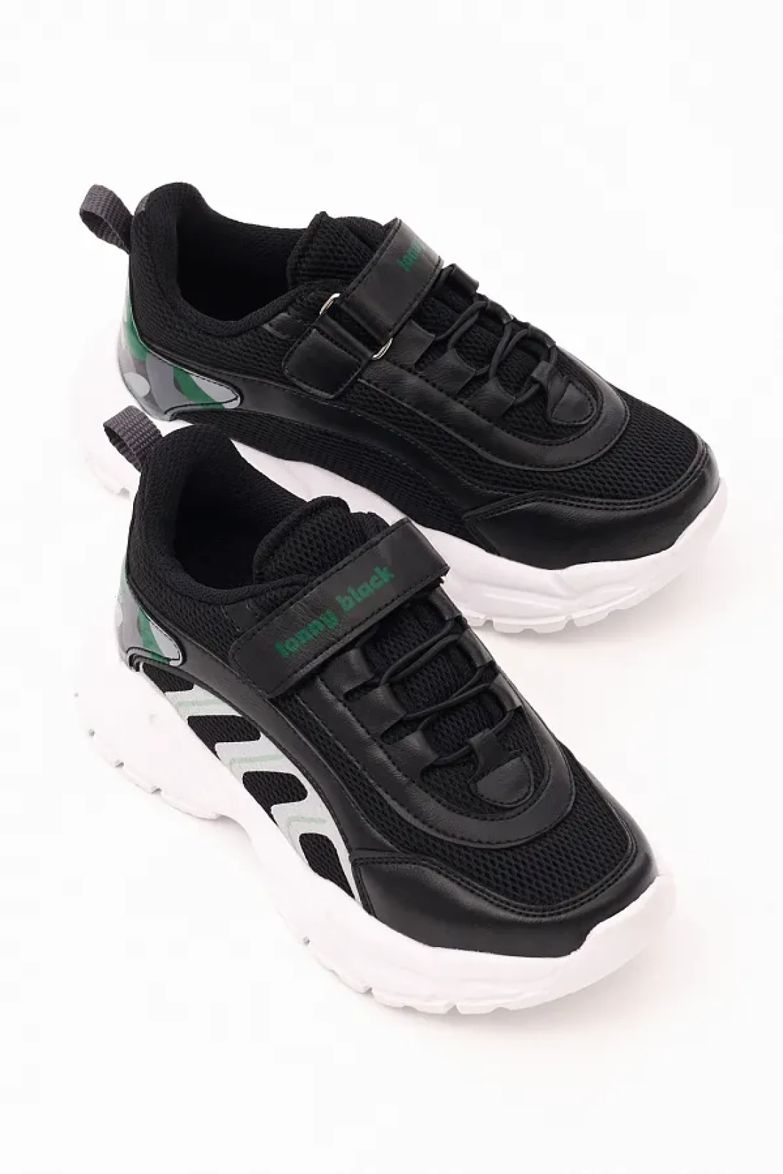 Tonny Black Children's Unisex Black Green Comfortable Rubber Laced Velcro Sports Shoes