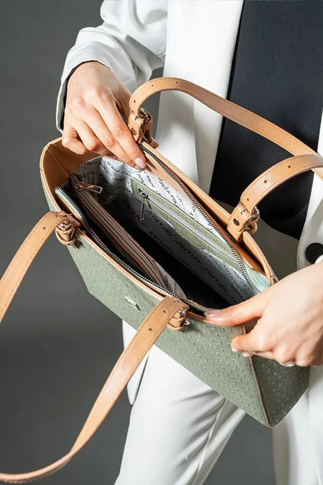 Just Polo Women's Long Strap 3 Compartment Shoulder and Hand Bag