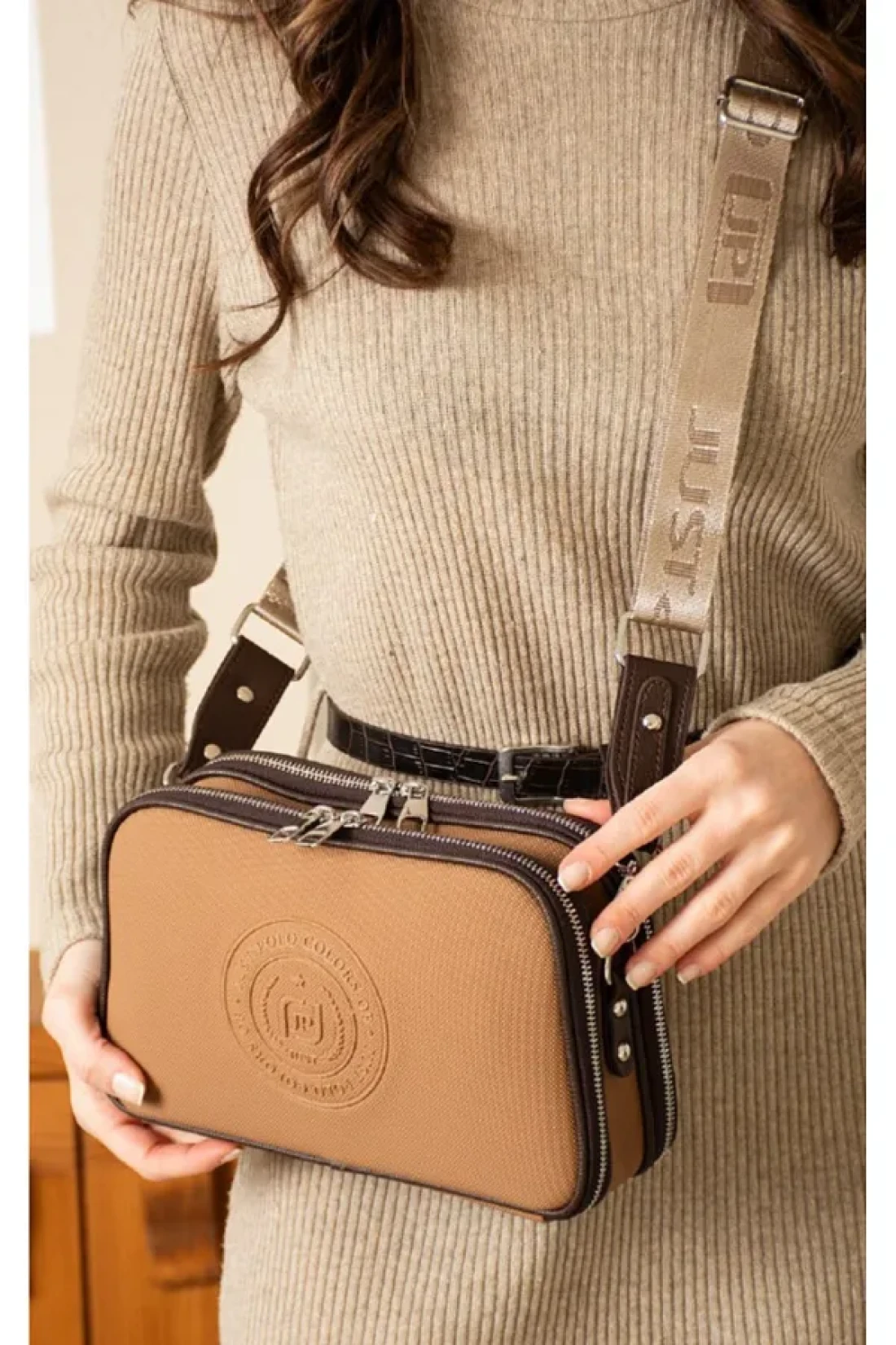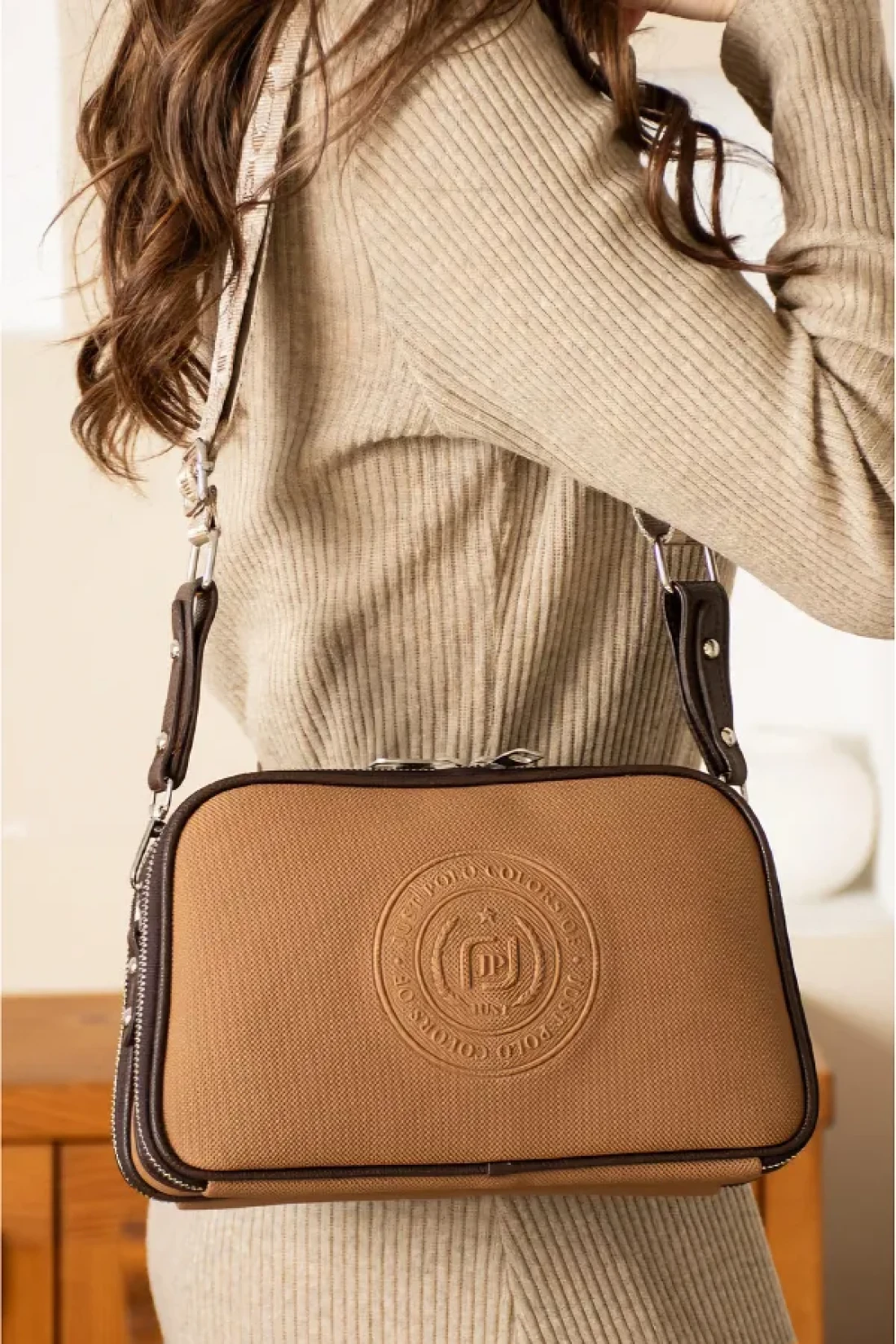 Just Polo Justpolo Women's Burgundy 5 Compartments Adjustable Long Strap Shoulder Bag Messenger Bag