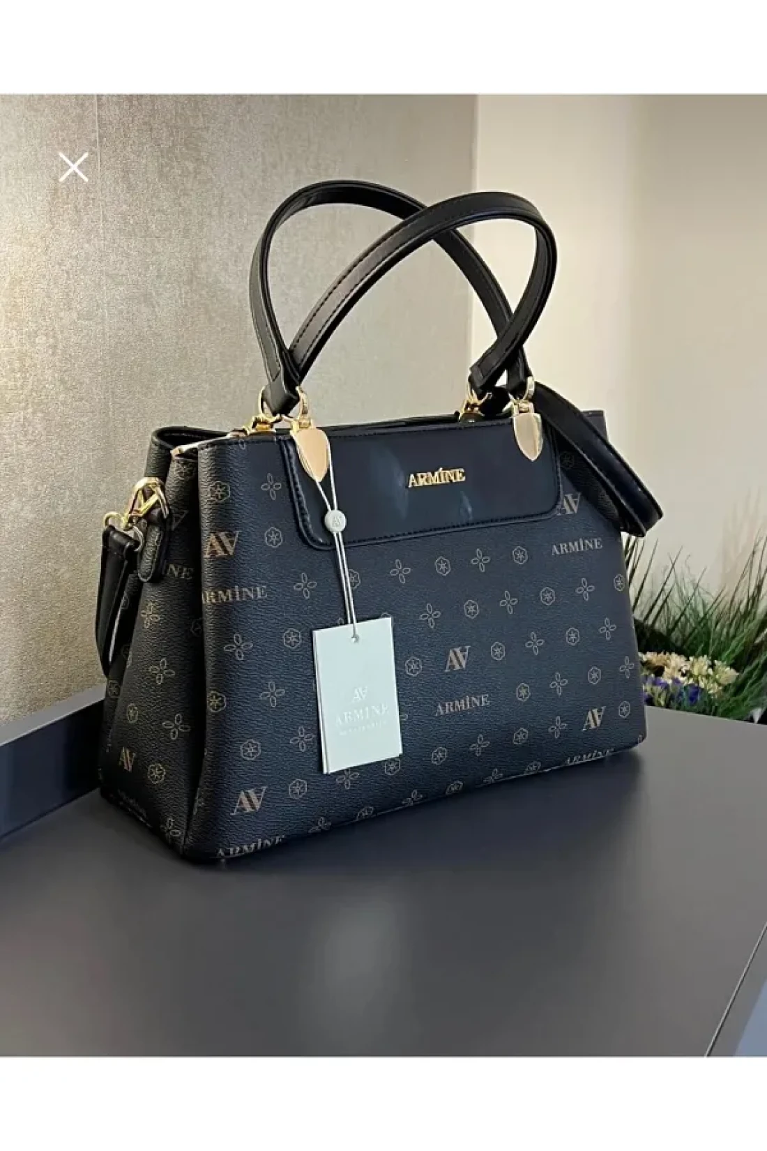 ksarmine special color Leather handbag designed as konbin hand and arm bag Product features Color: black coffee brand and logo printed accessory color: rose/gold faux leather special design Armin 2-section interior with stylish and attractive design suitable for daily use Zippered design and lining brand printed patterned hand & arm bag Bag closure: zipper handle : arm strap and hand hold feature materials: ion coating (darking color sweed resistant)