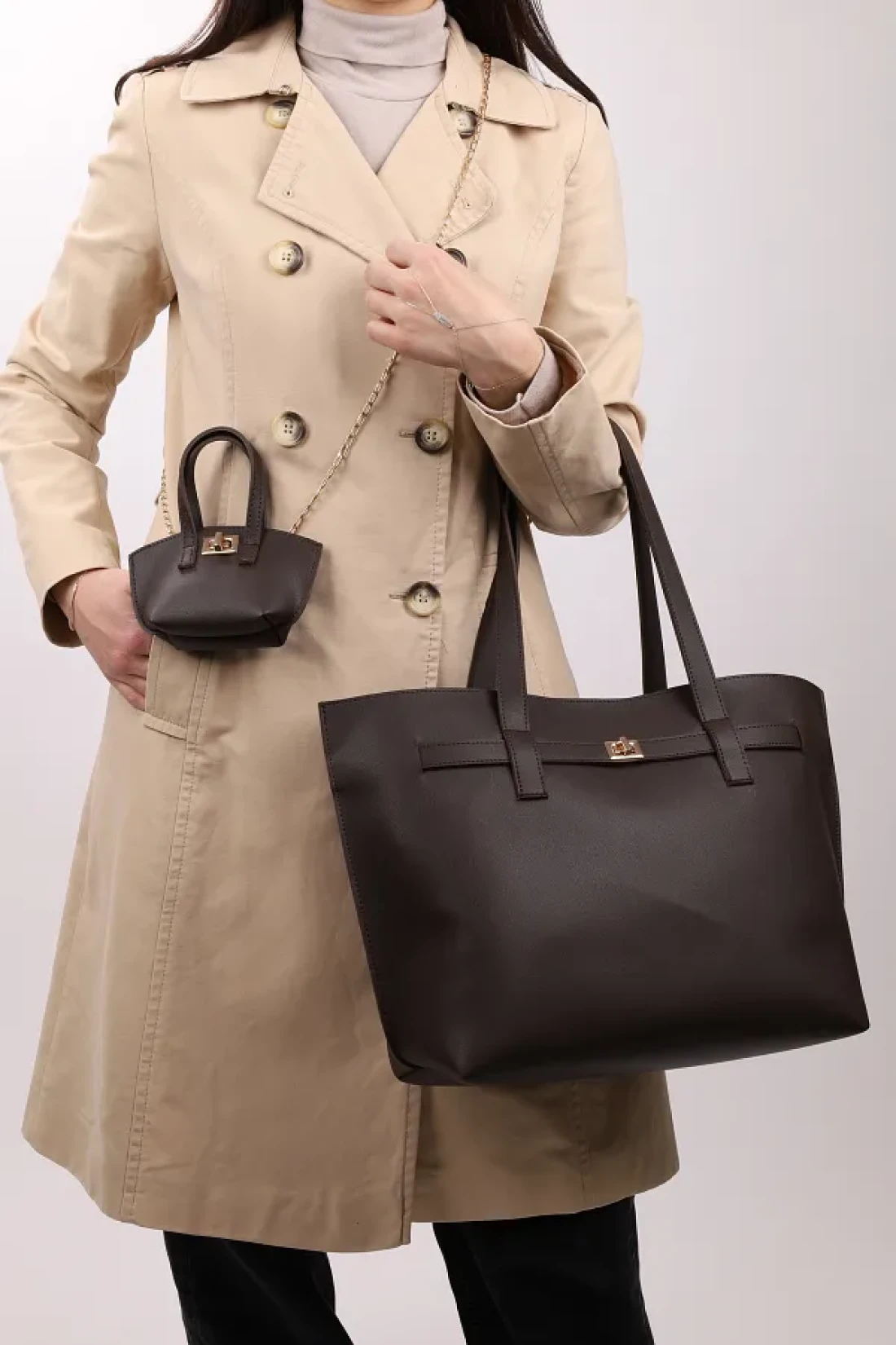 NOTHING With Chain Mini Bag - Charmandable Bitter Coffee Bag Large Size Hand and Shoulder Bag Bella