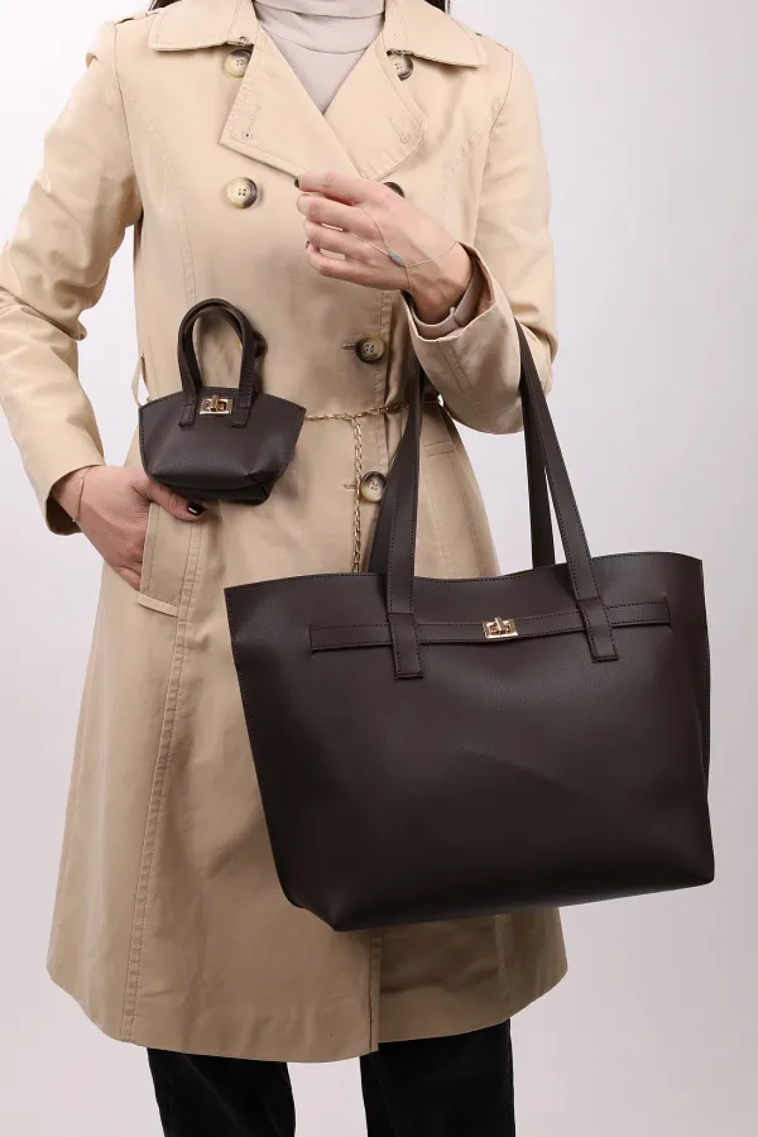 the charm is a removable accessory. The mini bag that comes with it can be used as both a keychain, a waist bag, and a crossbody bag. The inside is suede. It is a bag option that stands out with its large interior volume and versatile use. You can use it to carry all your daily items such as your mobile phone, glasses, wallet, card holder, and cosmetics. It is made of 100% eco-friendly synthetic leather. It is made from 1st class material. It is resistant to tearing and breaking. This bag, which stands out with its stylish and modern design, is suitable for daily use and matches with every outfit thanks to its casual style. It is made of suede leather and stands out with its durability and aesthetic appearance. Thanks to its magnetic closure detail, it can be easily opened and closed and offers practical use.