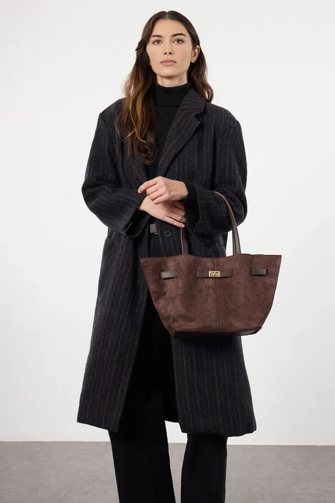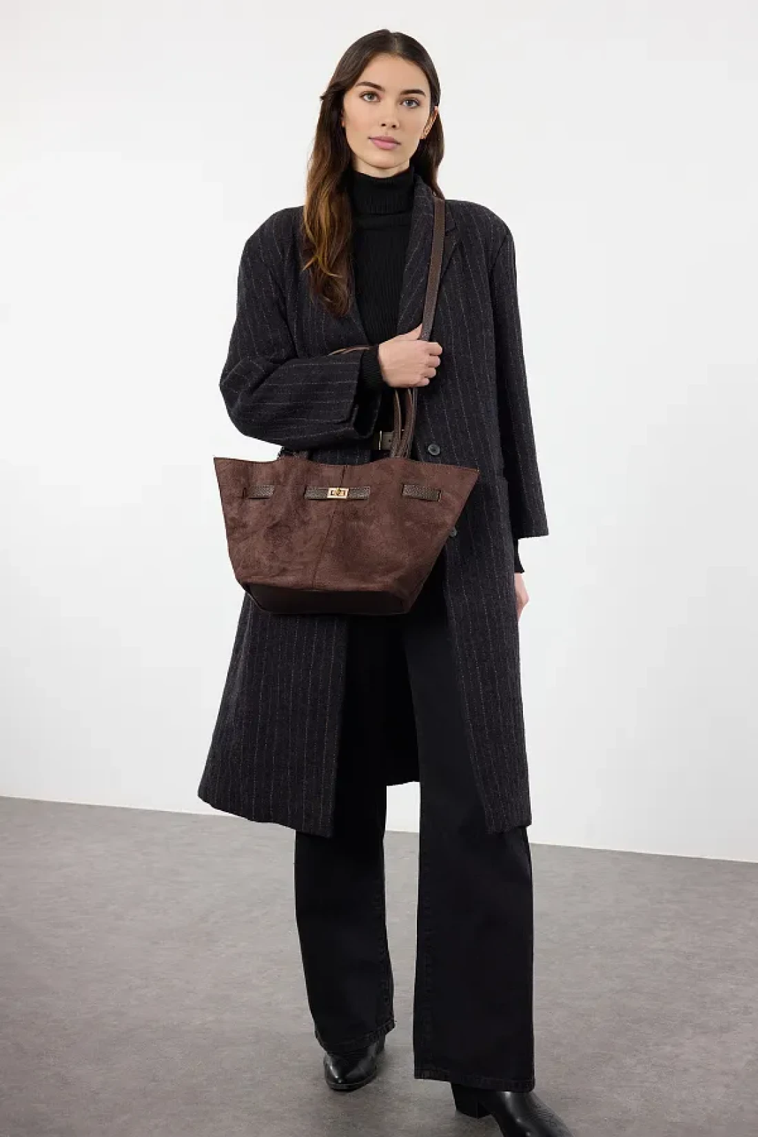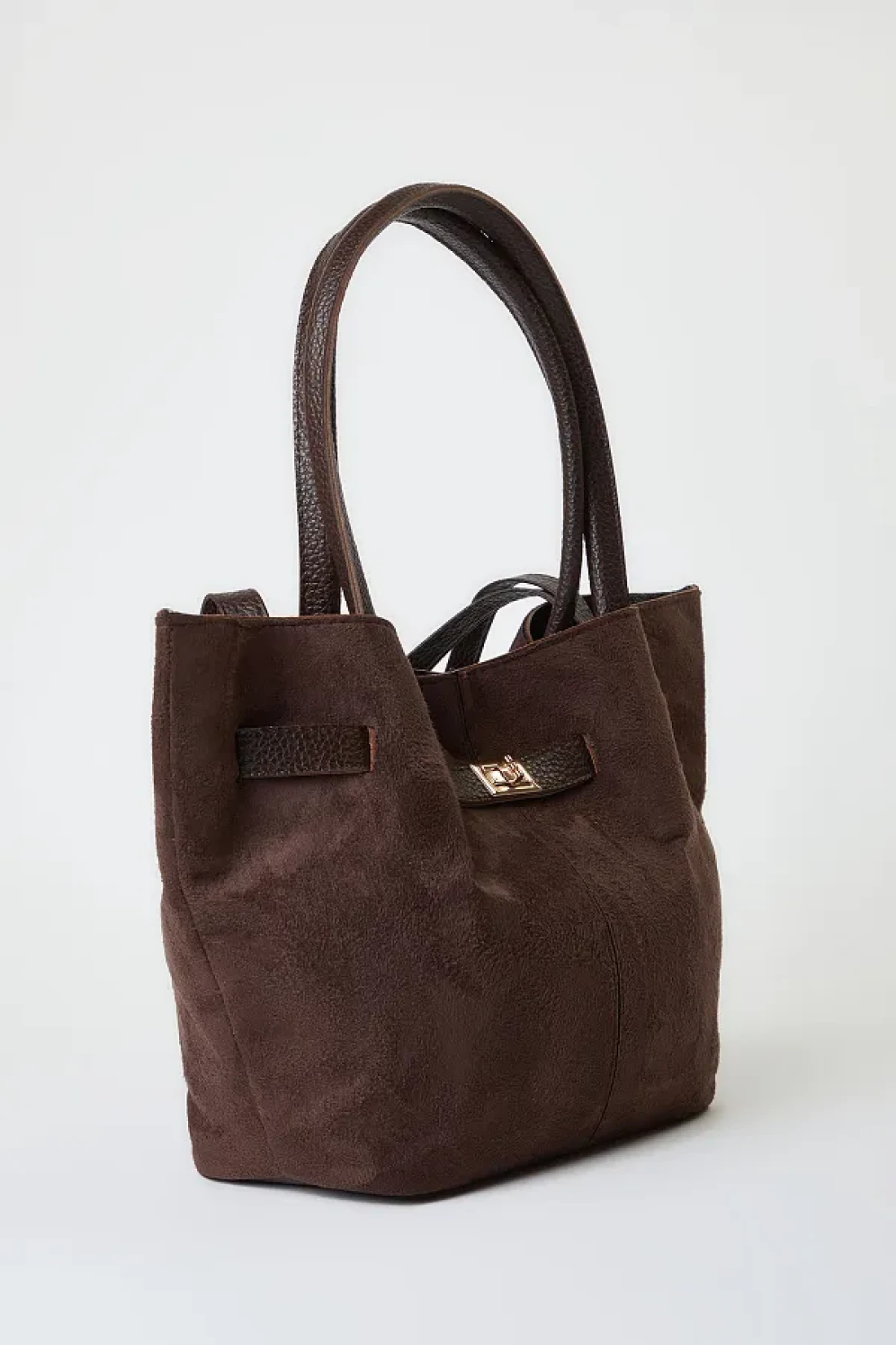 Shoes Dark Brown Suede Tote Shoulder Bag with Handle and Cross Strap Takaw25Oc00013