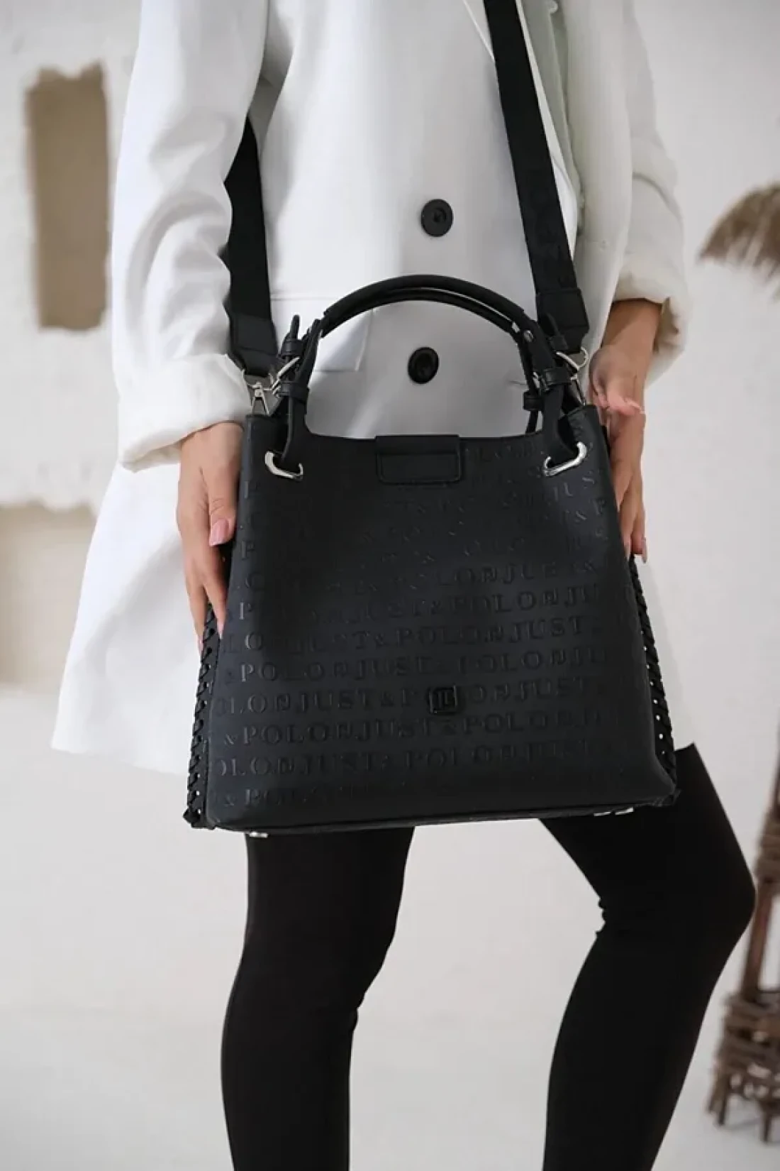 Just Polo Women's Black Braided 4-Compartment Shoulder Bag and Handbag