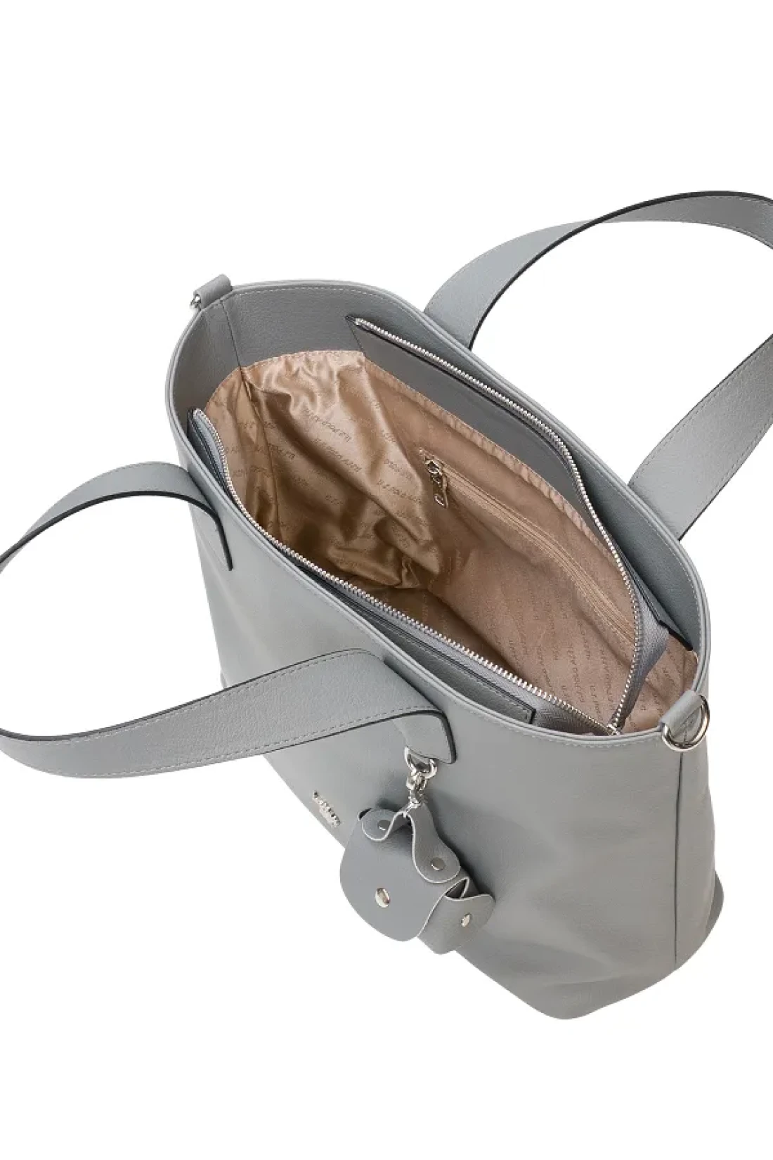 there is a zippered pocket on the outside. It has a zippered pocket inside. There is a phone holder. There is an adjustable strap. There is a removable hanger. Handle length: 130 cm. Closure type: zipper