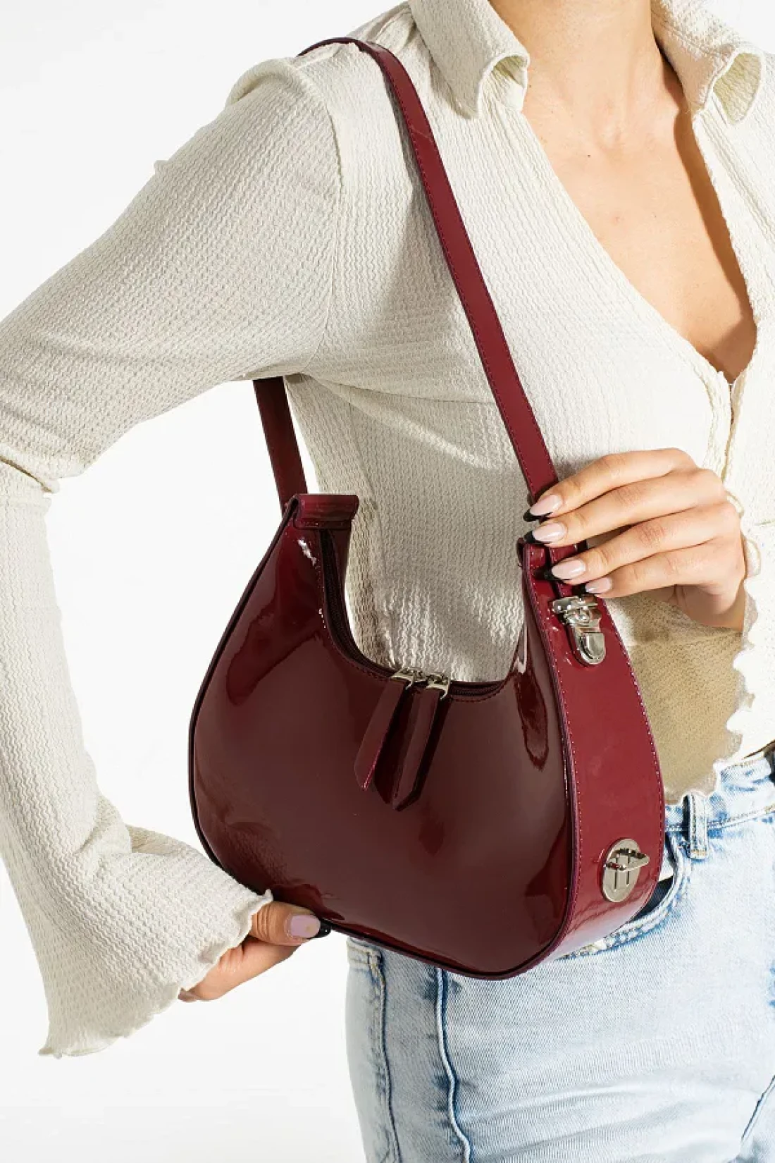 The quality is made from imported artificial patent leather, it is domestically produced, it is not washable, it does not have a long strap, it is not used crosswise. The arm strap can be adjusted in two stages thanks to the special lock system. size: 12x21cm. the inside is lined with fabric. it has a zipper closure detail. the metal accessories are silver.