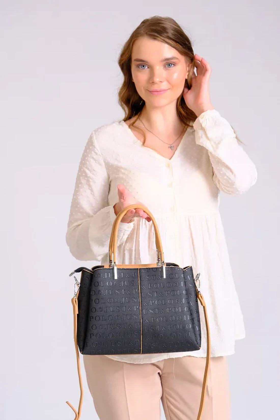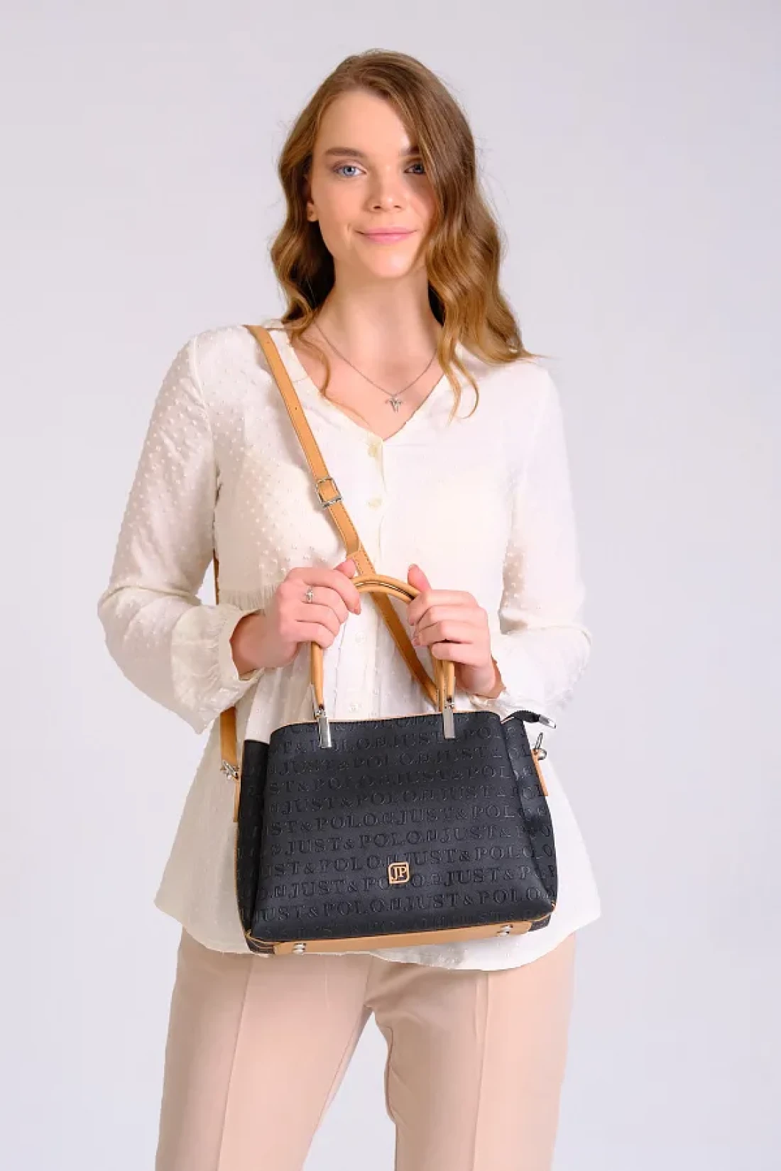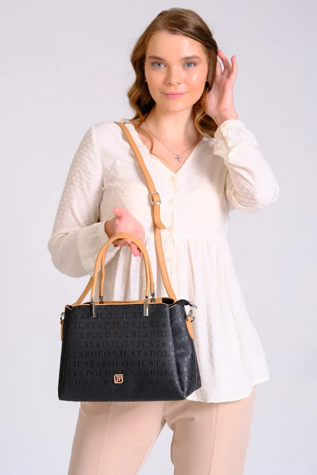 Just Polo Women's Black Tan Just & Polo Patterned Snap and Zipper Closure Shoulder and Hand Bag